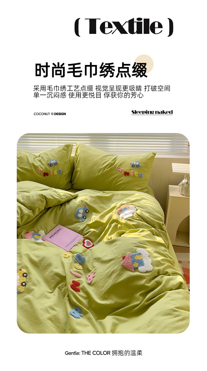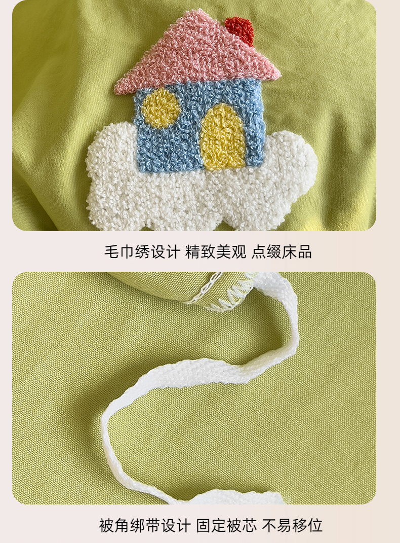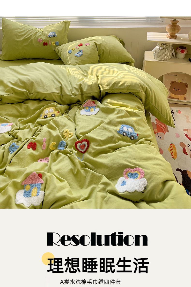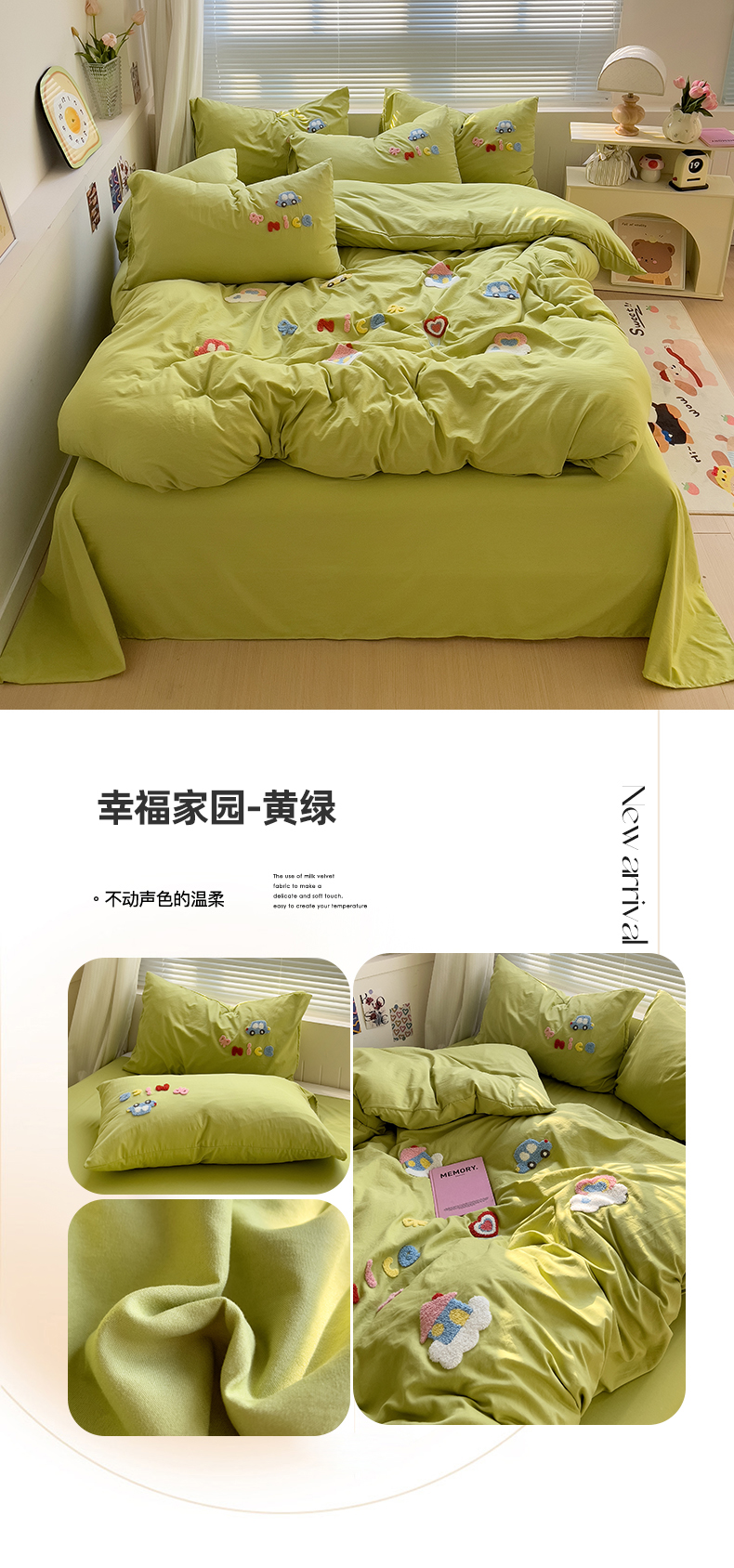 当前位置: 91家纺网 > 商品网购 > 床品套件 > 四件套 > 凯洛奇 2025新款1水洗棉毛巾绣四件套系列【提供买家秀】 幸福家园-黄绿