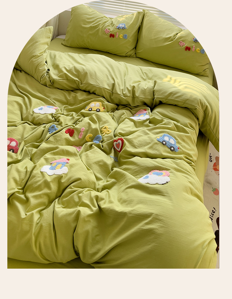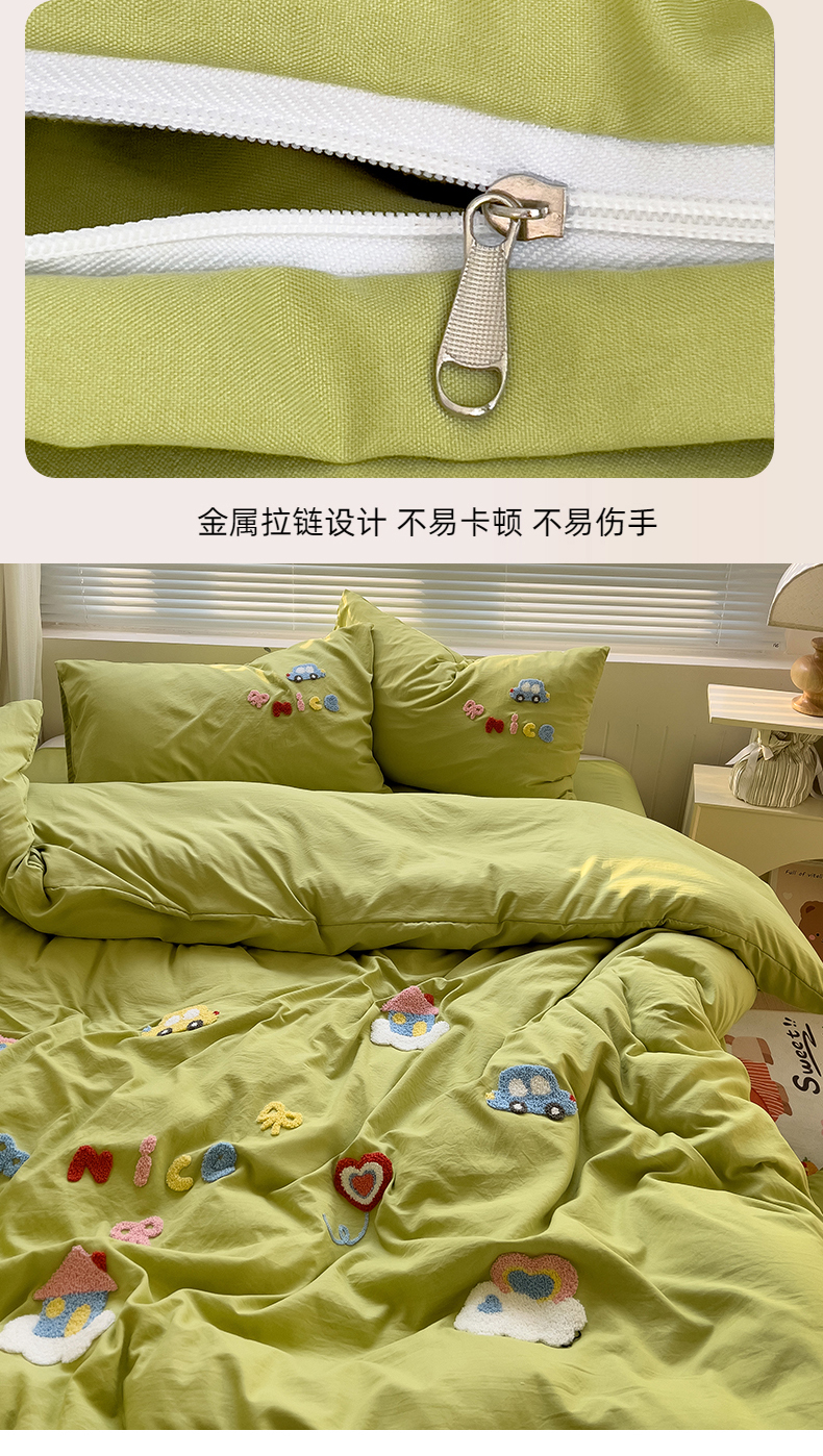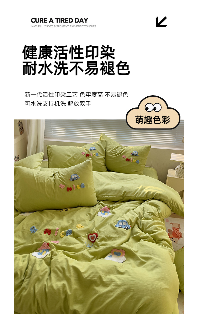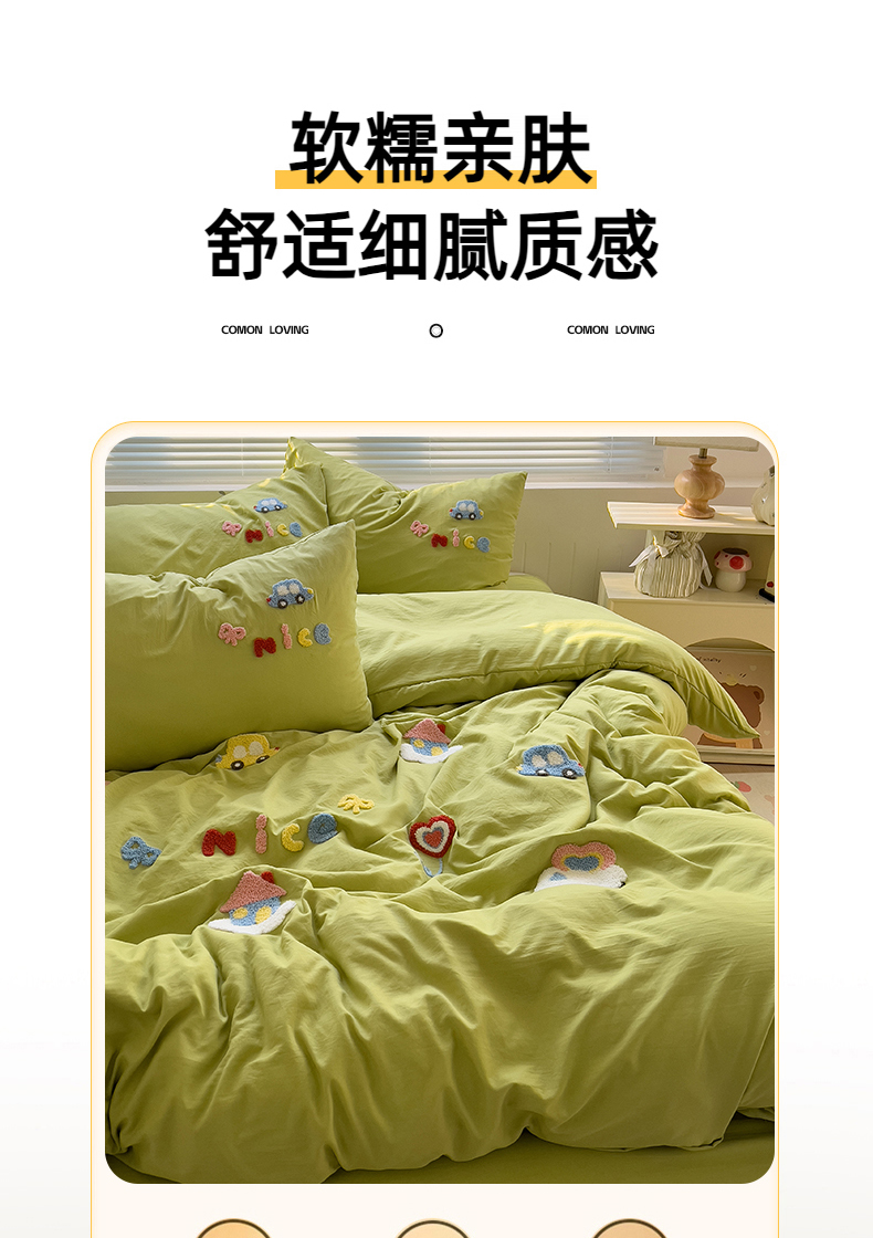当前位置: 91家纺网 > 商品网购 > 床品套件 > 四件套 > 凯洛奇 2025新款1水洗棉毛巾绣四件套系列【提供买家秀】 幸福家园-黄绿