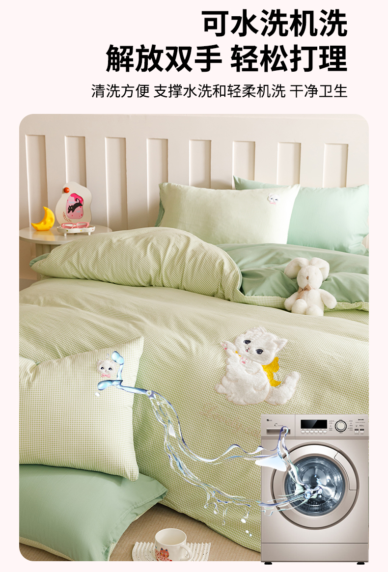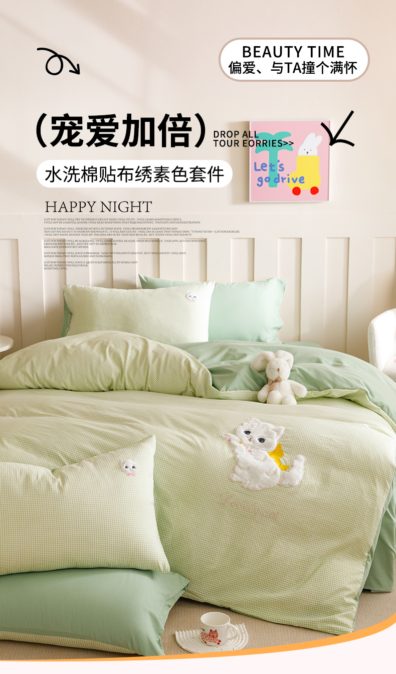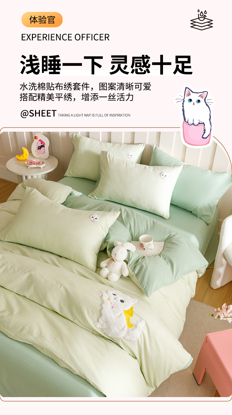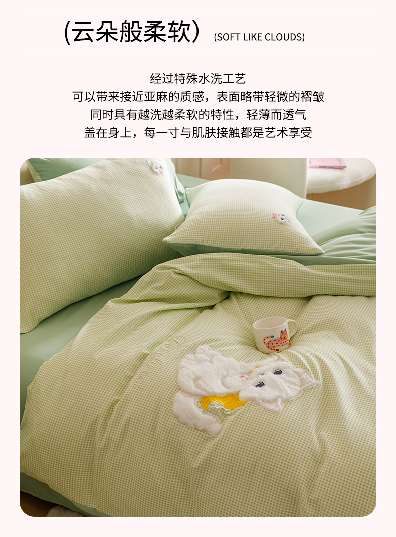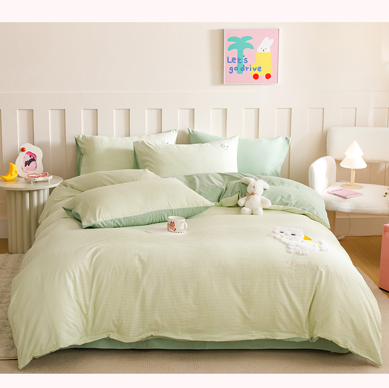 当前位置: 91家纺网 > 商品网购 > 床品套件 > 四件套 > 水洗棉四件套 > (买家秀 爆款花型不断货)无印风纯棉四件套全棉四件套水洗棉三件套床单四件套床笠四件套色织水洗棉四件套 蝴蝶猫咪绿格