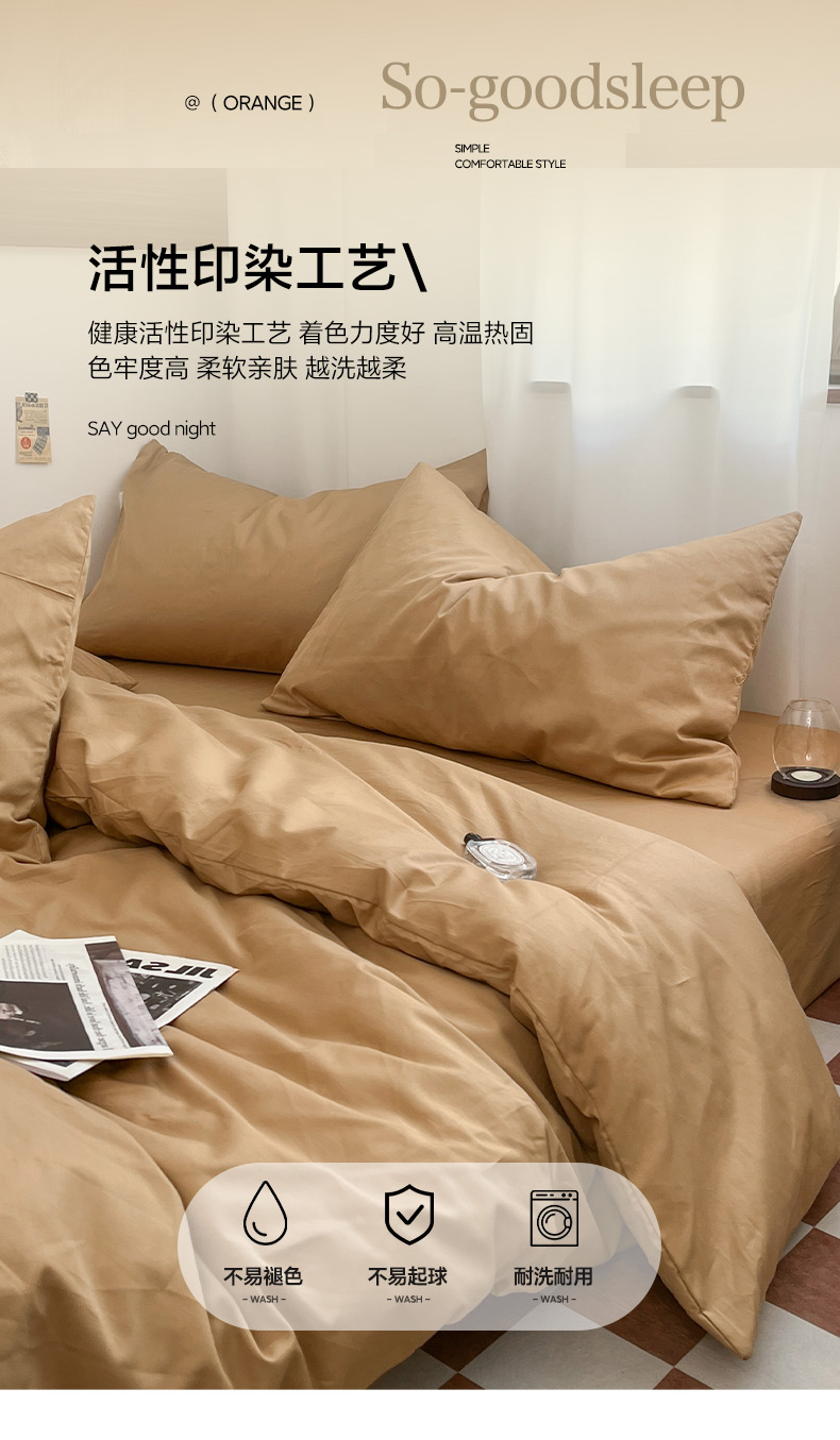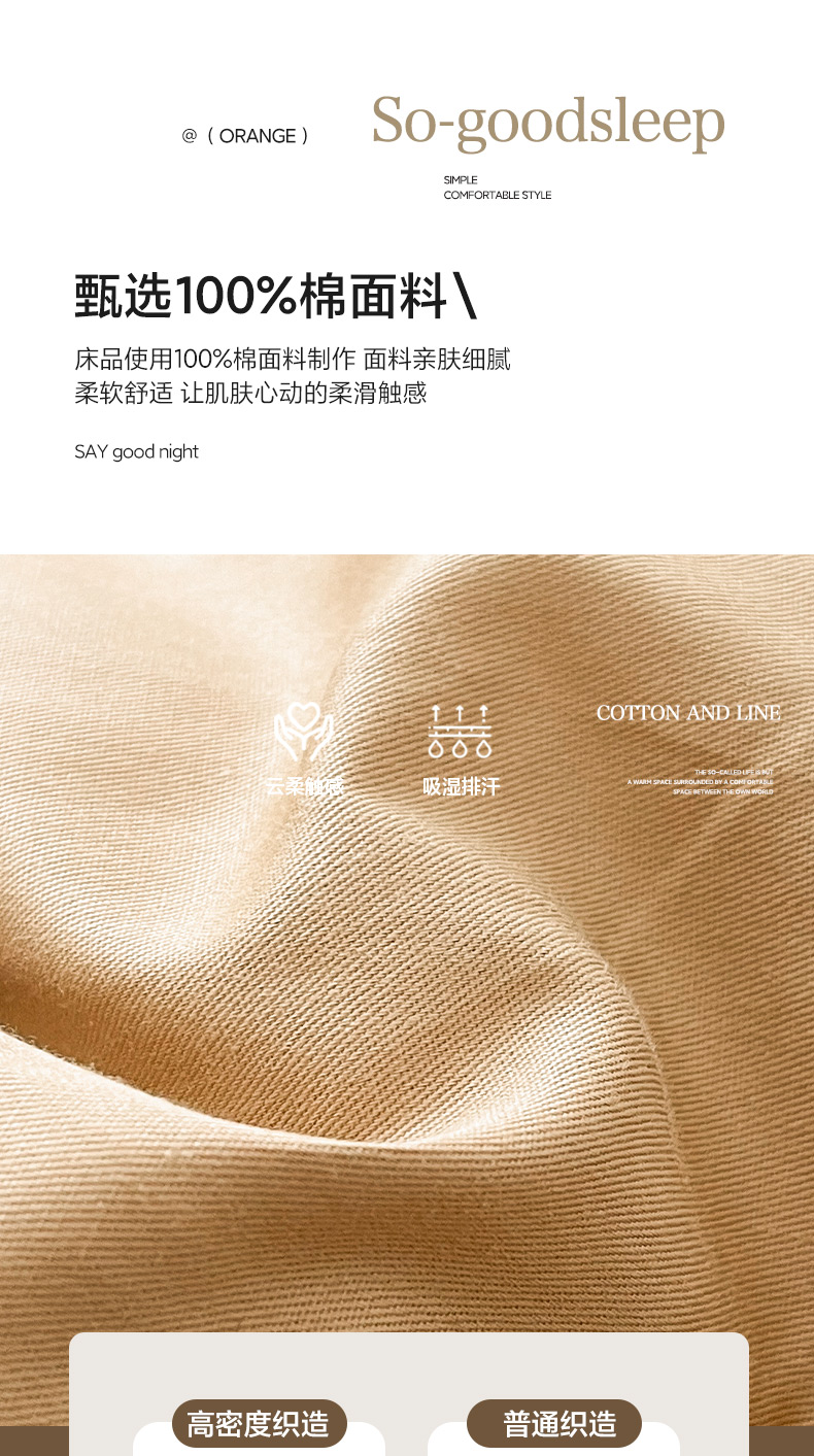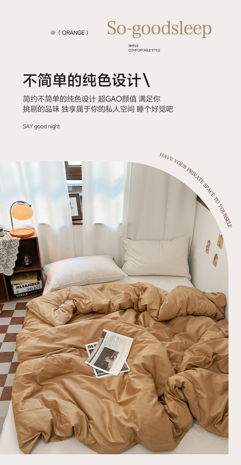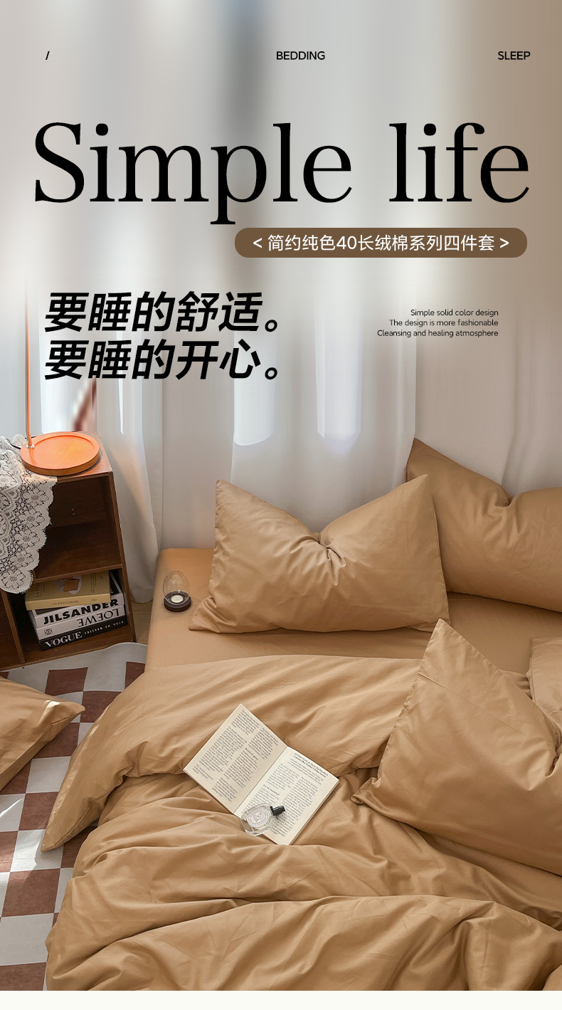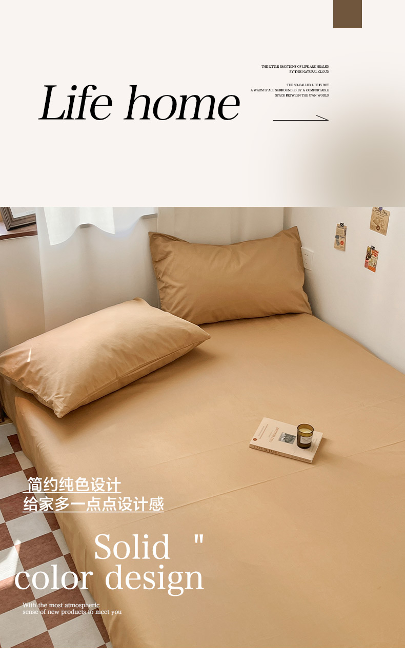 商品名称:2025新款40支长绒棉ins美拉德色系纯色全棉四件套床笠极简三件套纯棉四件套系列--四件套 浅茶色