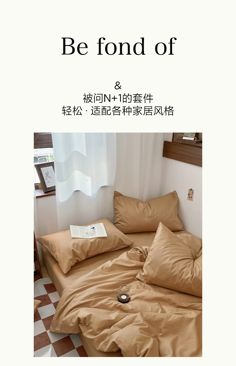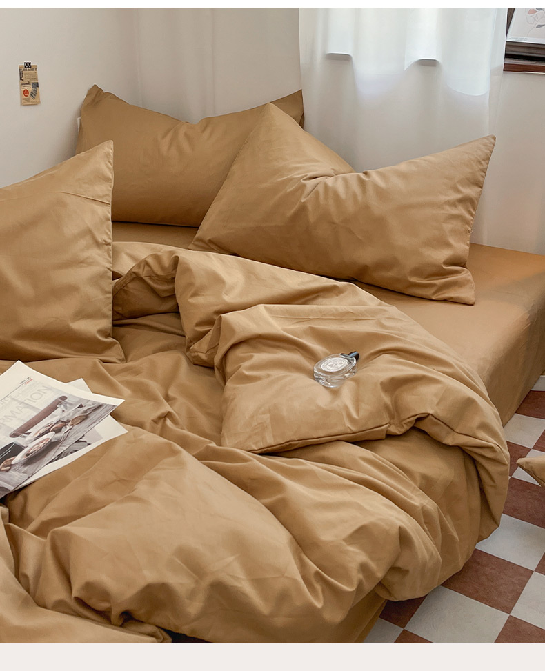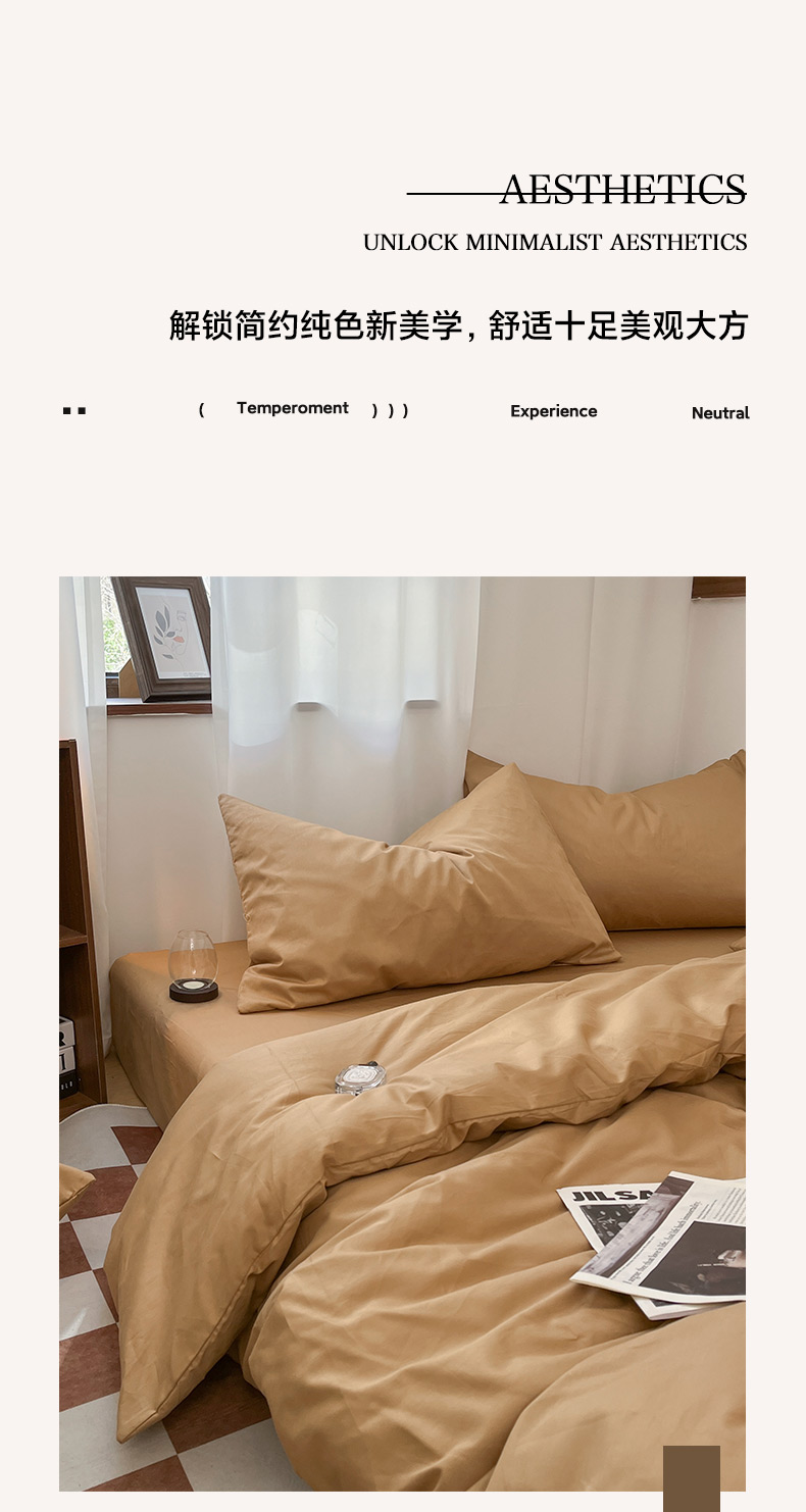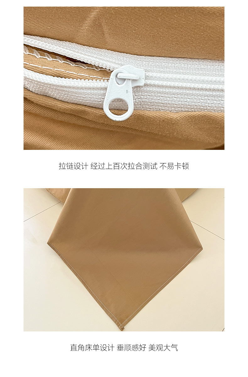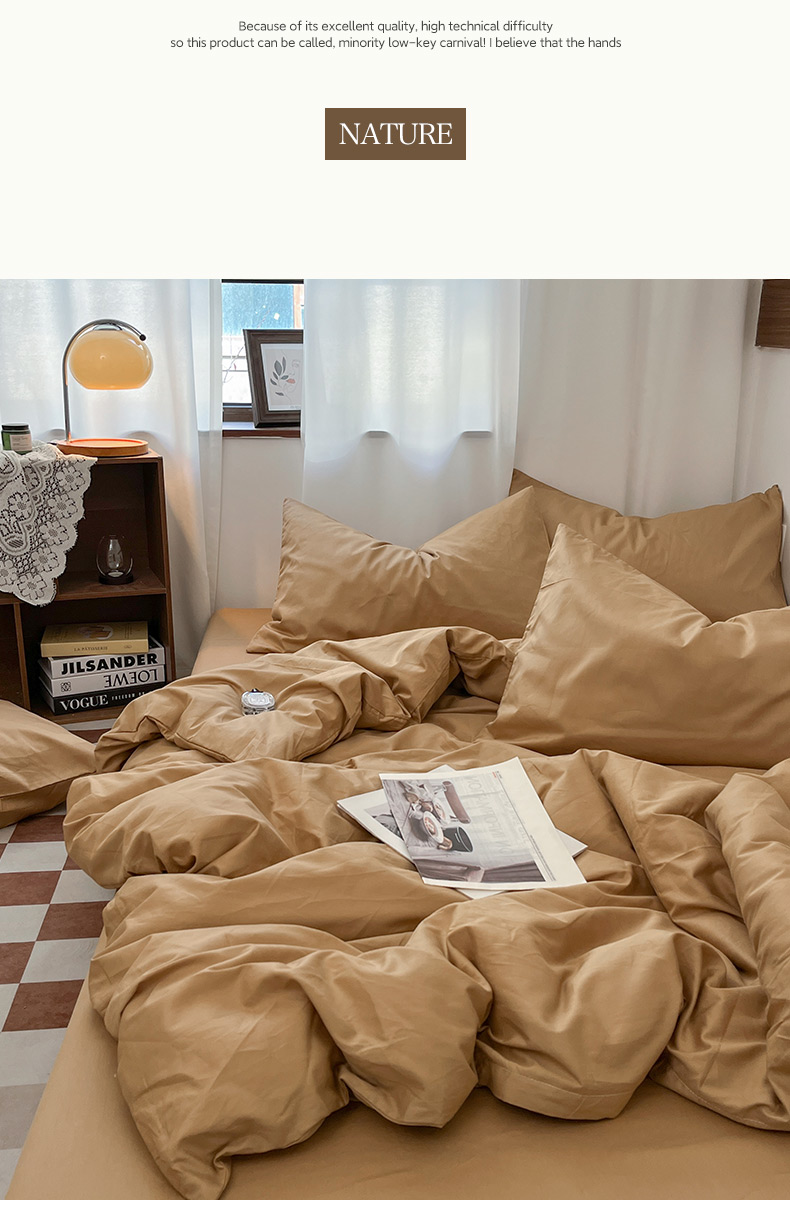 2025新款40支长绒棉ins美拉德色系纯色全棉四件套床笠极简三件套纯棉四件套系列--四件套 浅茶色