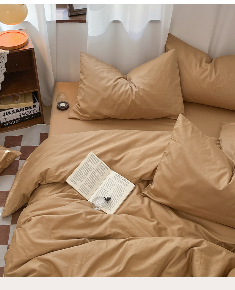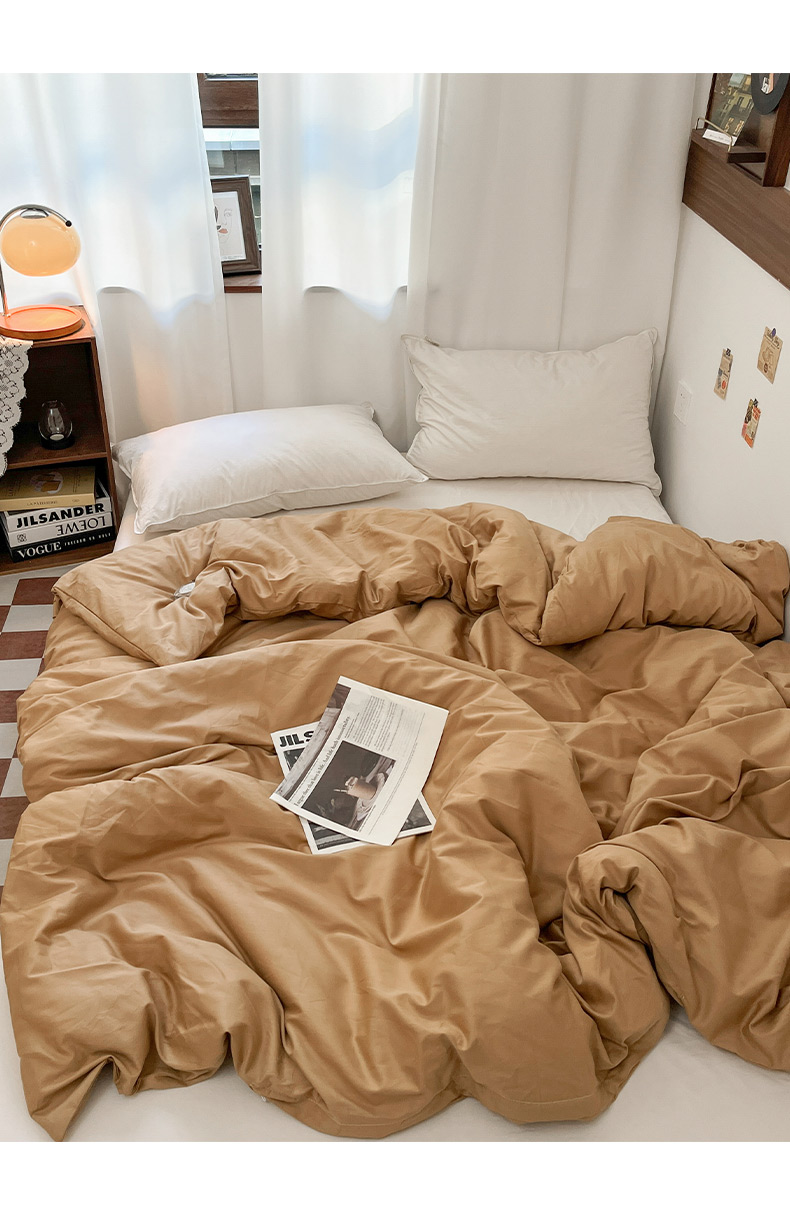 2025新款40长绒棉ins美拉德色系纯色全棉单品四件套床笠四件套系列--单被套 浅茶色