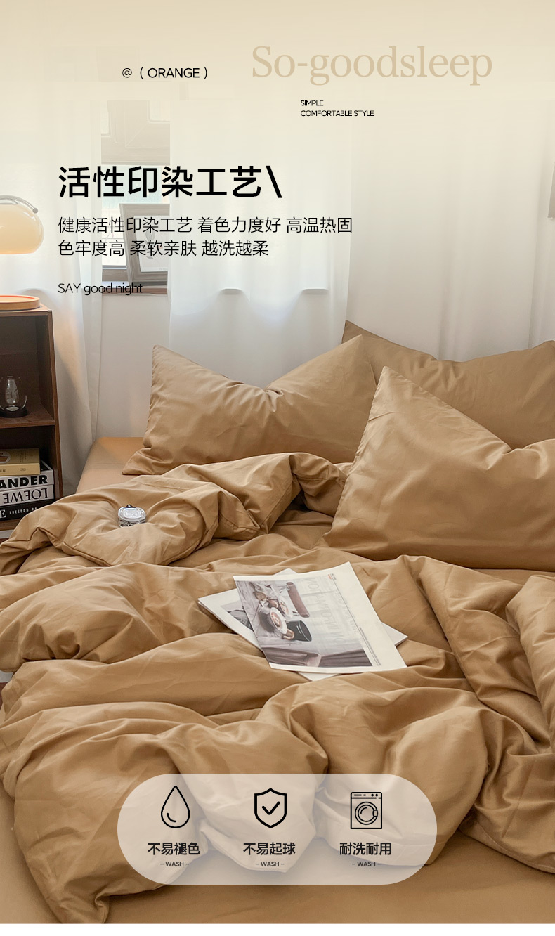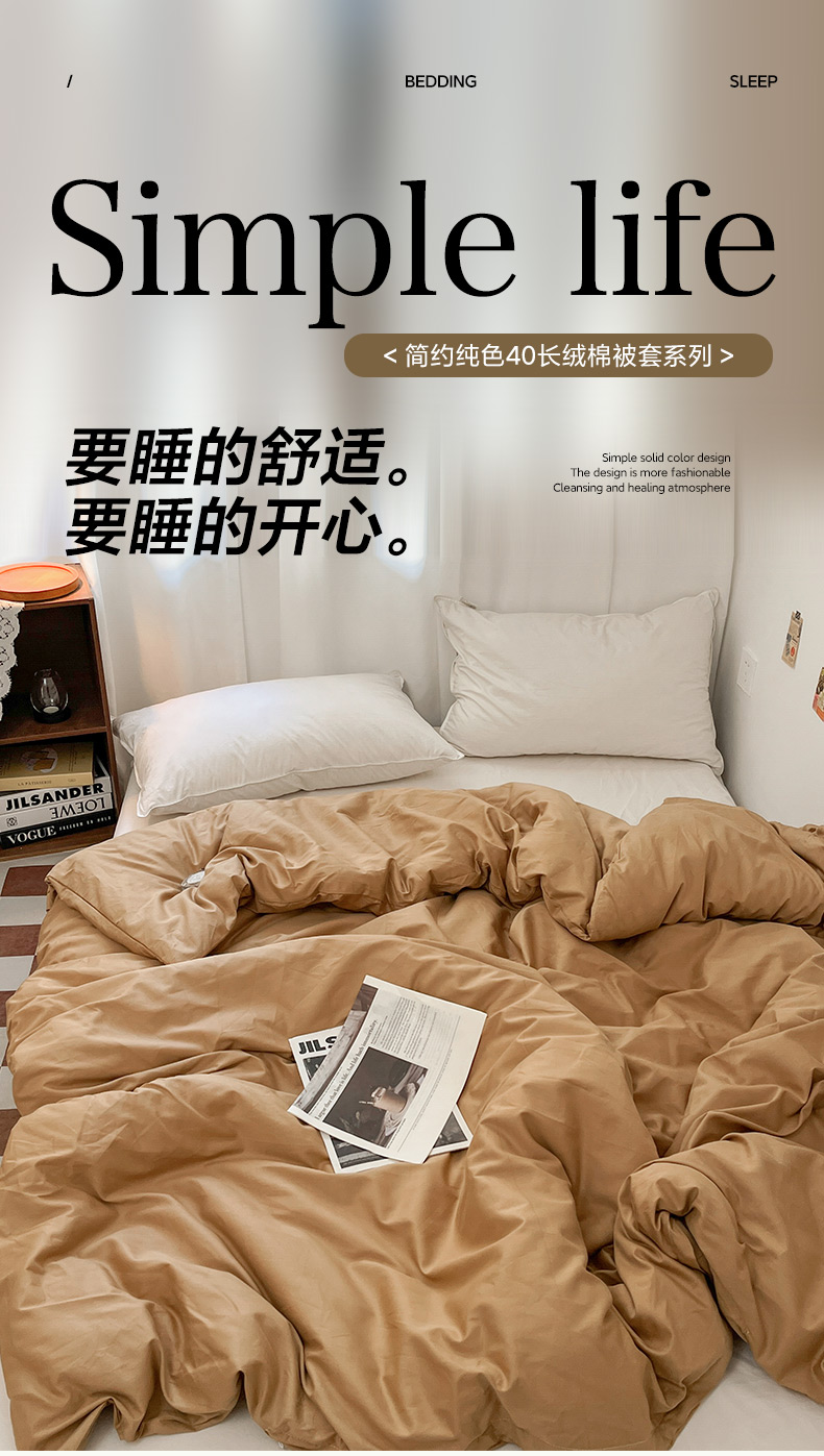 商品名称:2025新款40长绒棉ins美拉德色系纯色全棉单品四件套床笠四件套系列--单被套 浅茶色