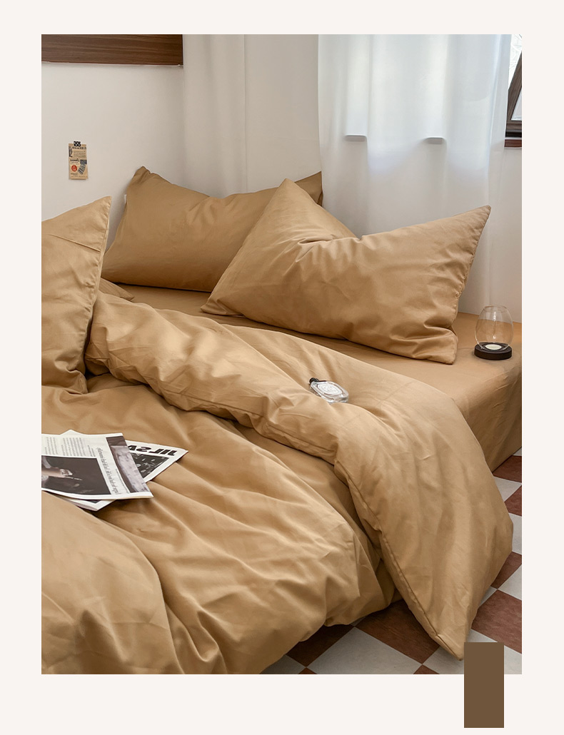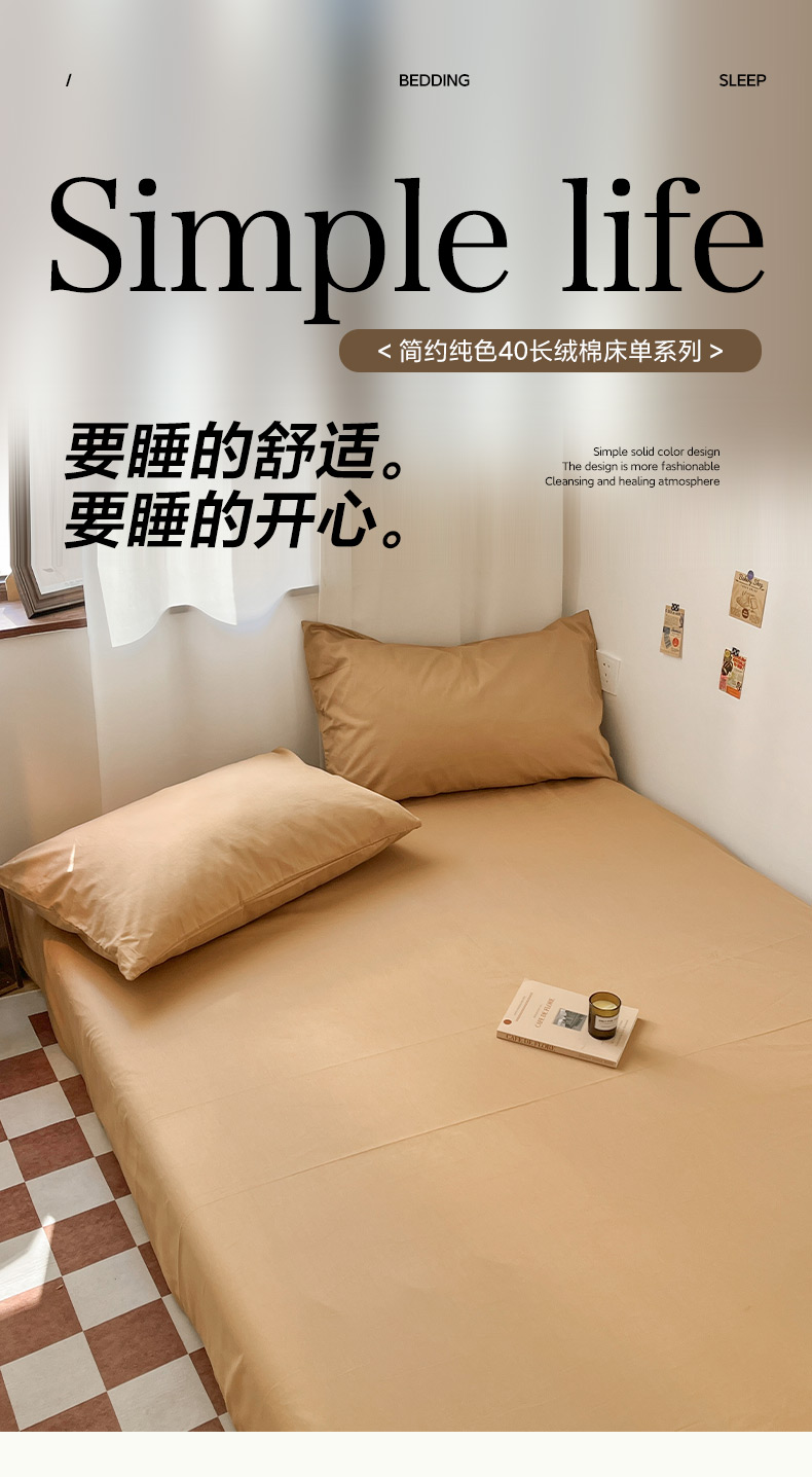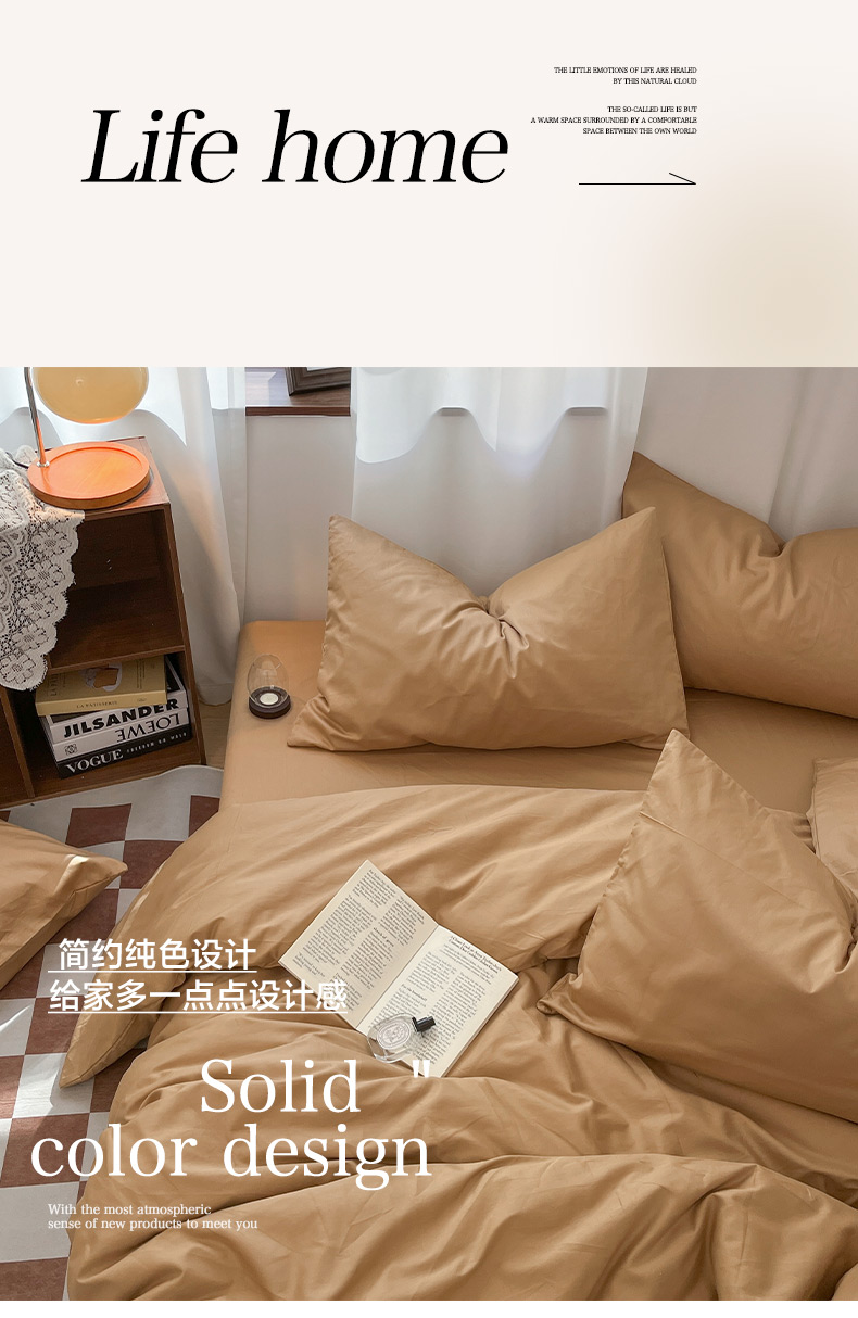 2025新款40长绒棉ins美拉德色系纯色全棉单品四件套床笠四件套系列--单床单 浅茶色