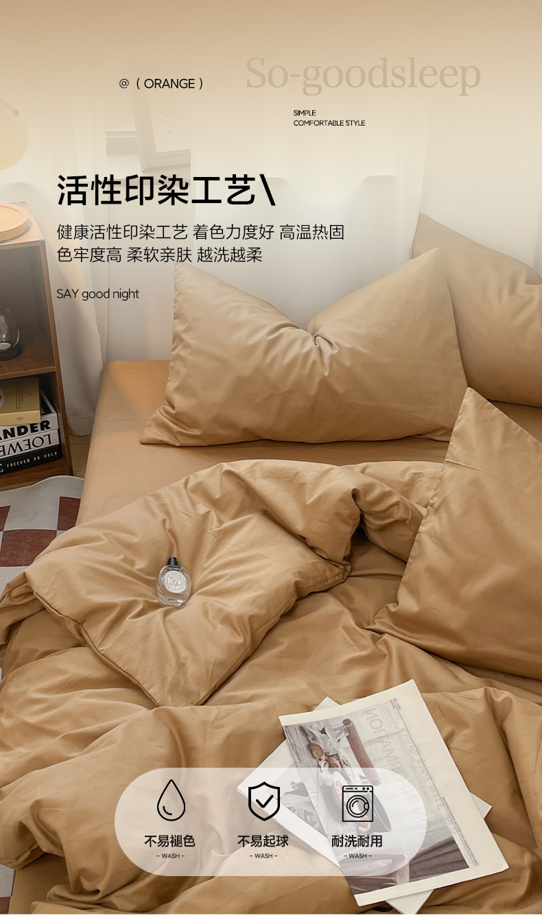 商品名称:2025新款40长绒棉ins美拉德色系纯色全棉单品四件套床笠四件套系列--单床单 浅茶色