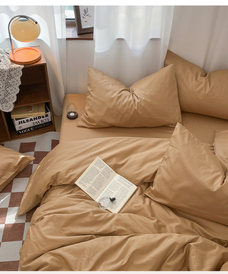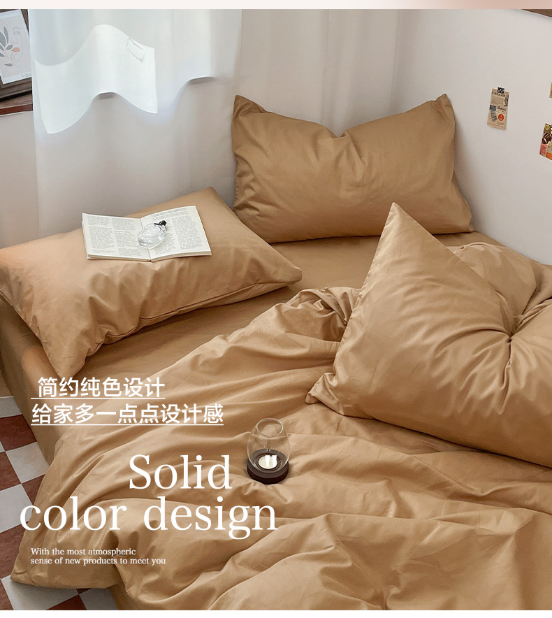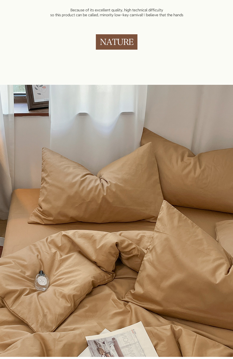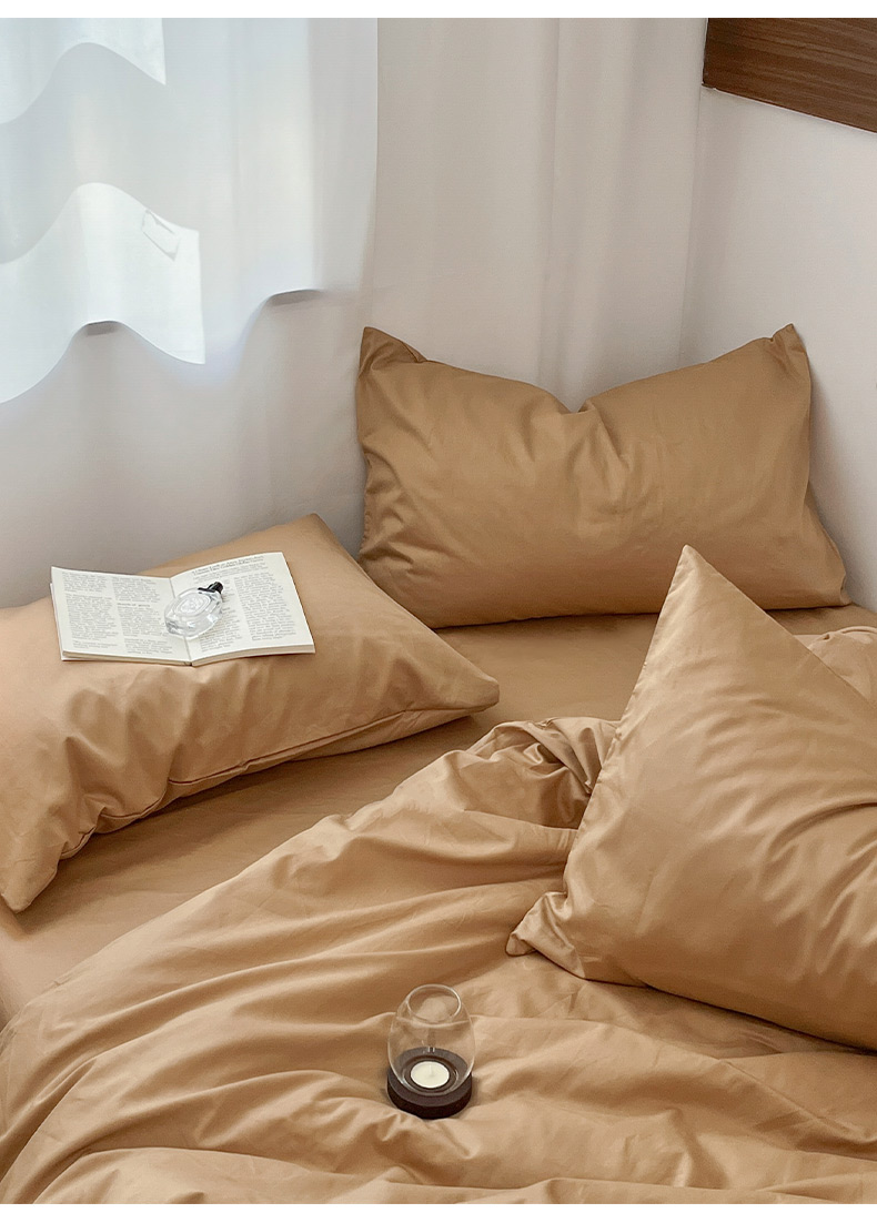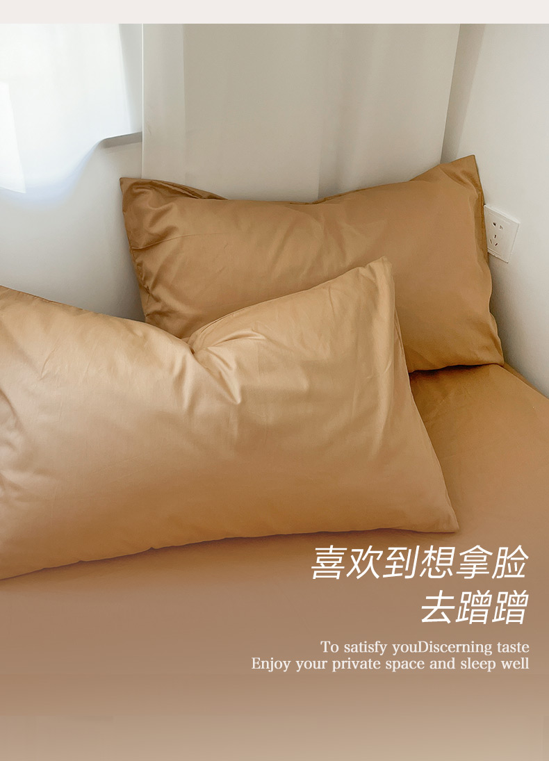2025新款40长绒棉ins美拉德色系纯色全棉单品四件套床笠四件套系列--单枕套 浅茶色