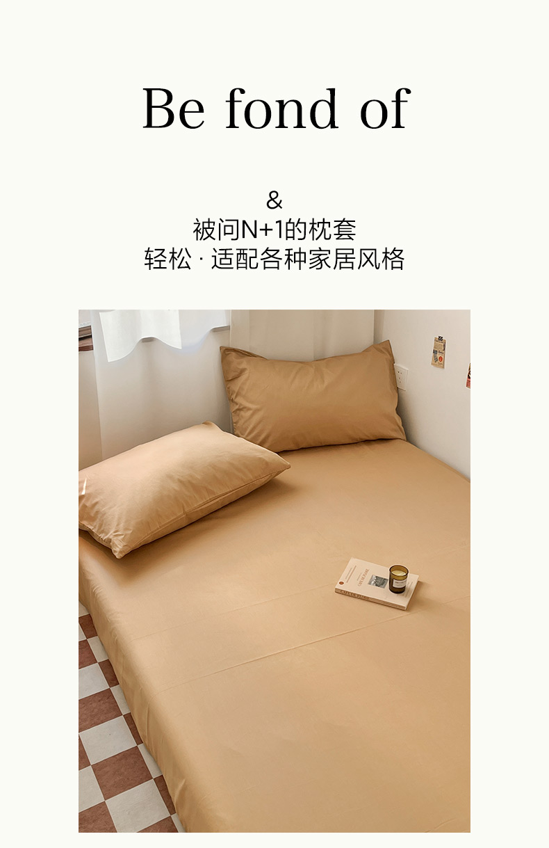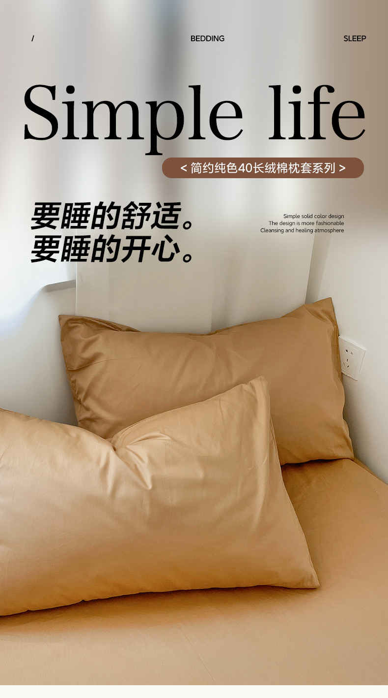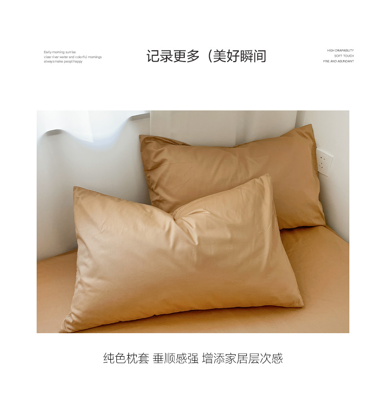 商品名称:2025新款40长绒棉ins美拉德色系纯色全棉单品四件套床笠四件套系列--单枕套 浅茶色