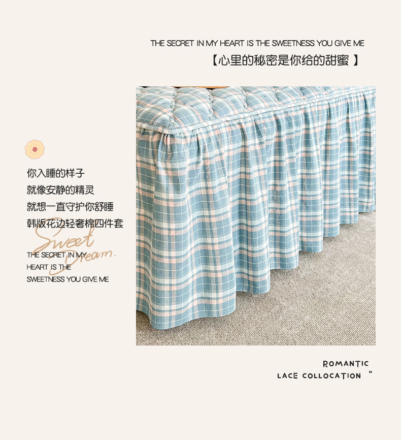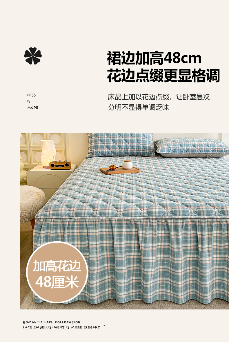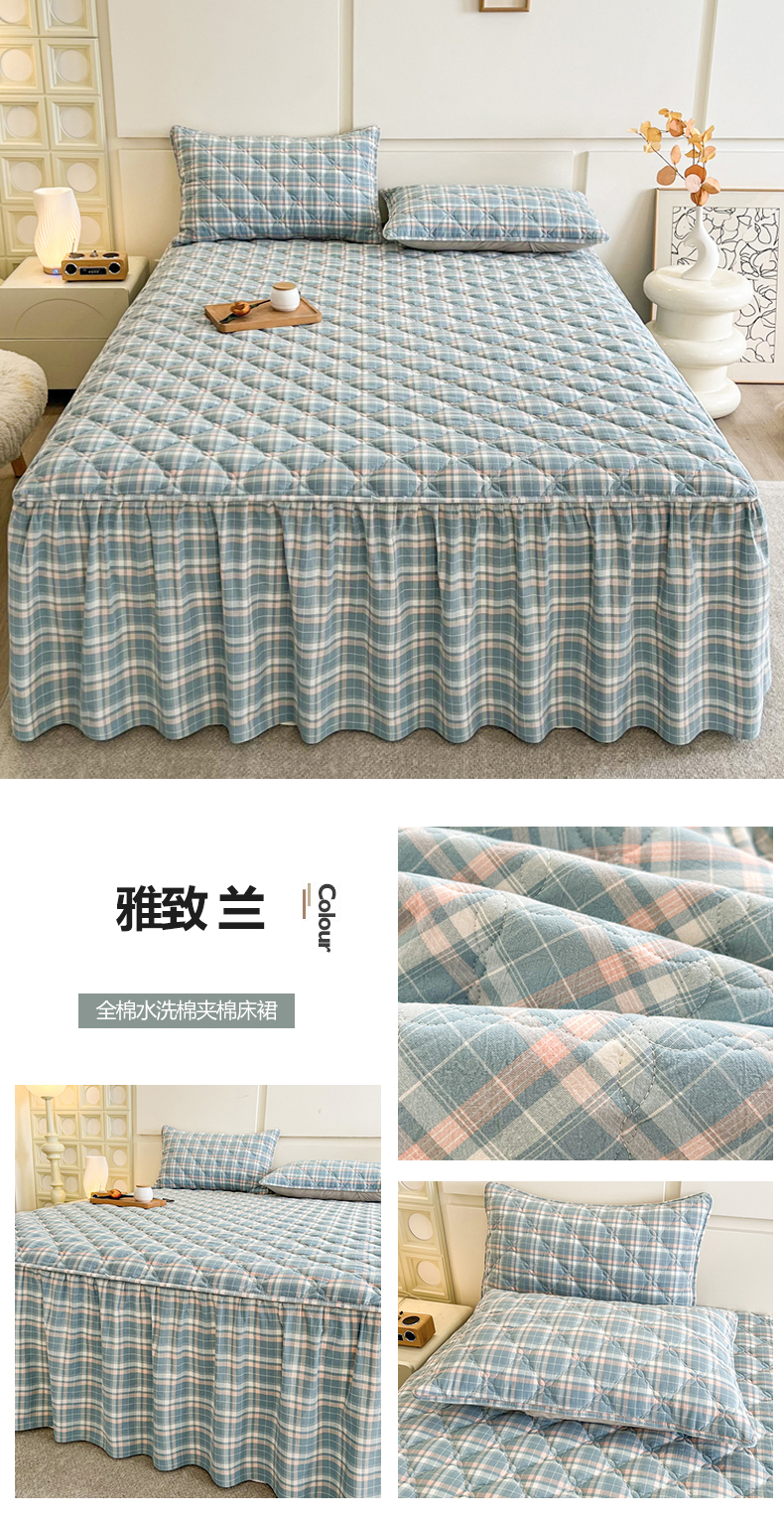 糯米猪家纺 2025新款全棉色织水洗棉床裙 雅致 兰