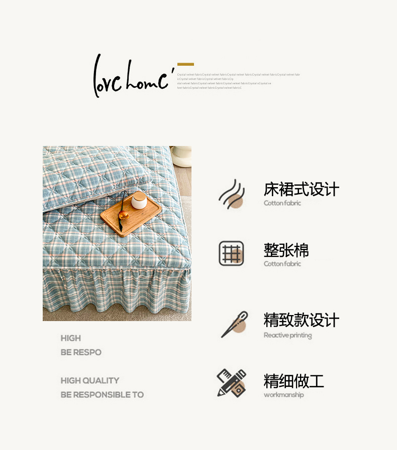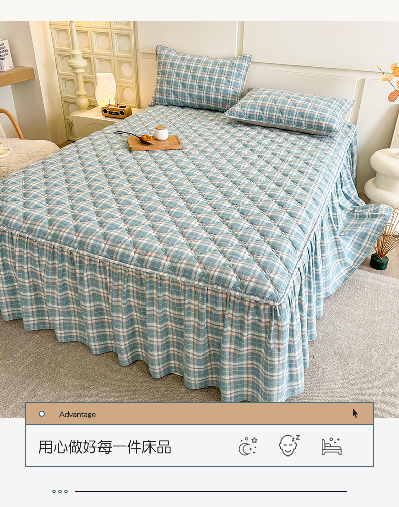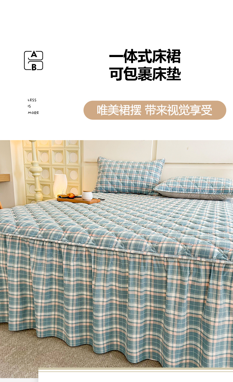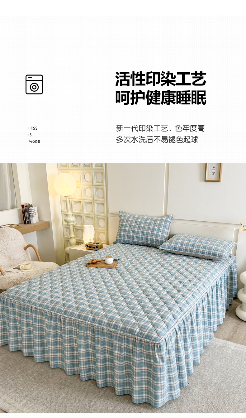 糯米猪家纺 2025新款全棉色织水洗棉床裙 雅致 兰