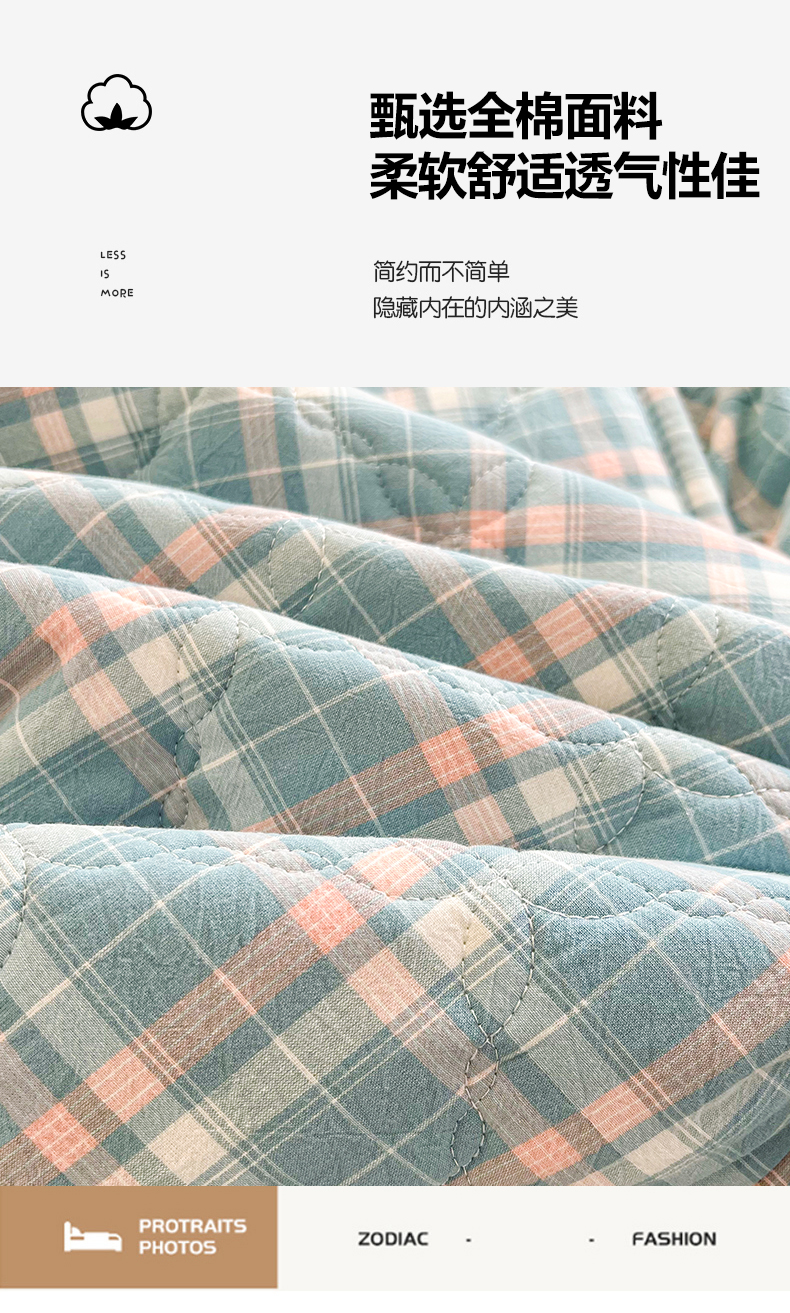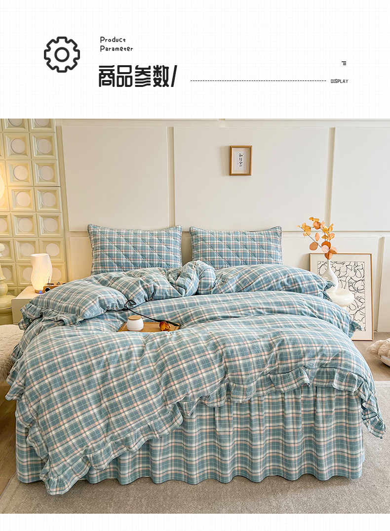 (总)糯米猪家纺 2025新款全棉色织水洗棉床裙,格纹 灰,简兮 兰,兰黄大格,晴空 灰,时尚 灰,雅致 兰