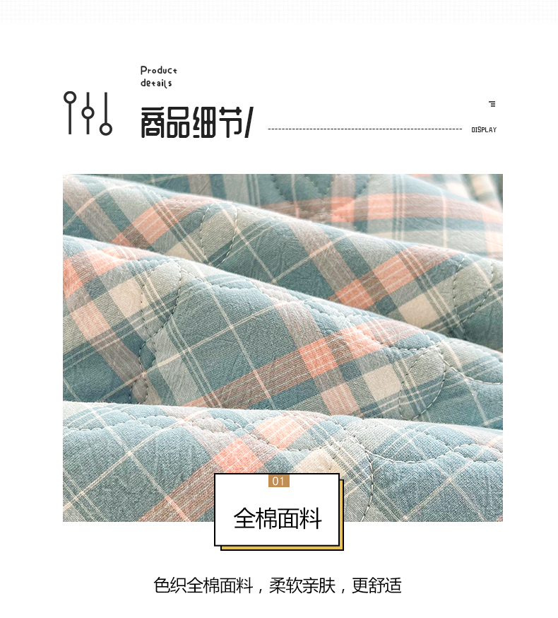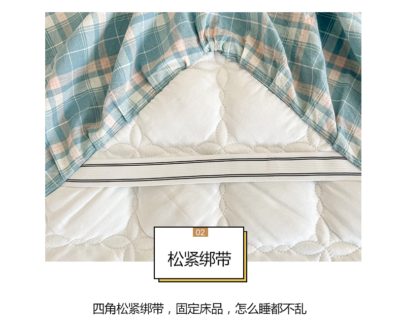 (总)糯米猪家纺 2023新款亲肤棉六面全包夹棉床笠--时尚格,水蓝,深蓝,灰色,白色,米色,粉玉