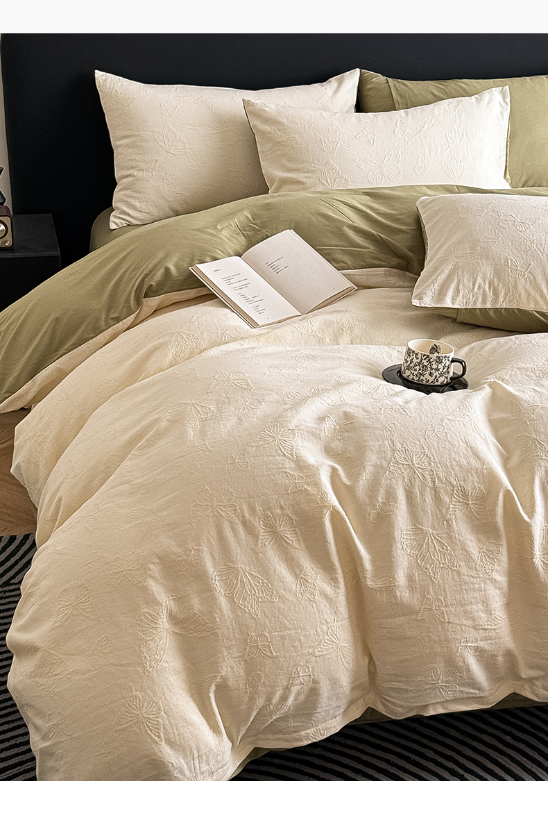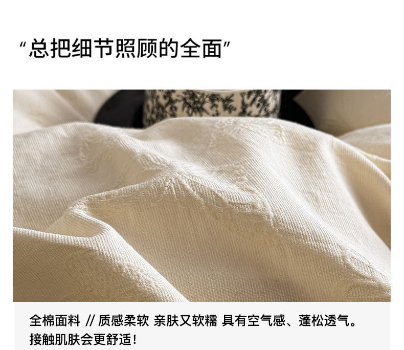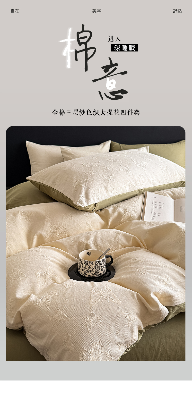 水云缦 2025新款水云缦全棉三层纱色织大提花四件套 蝶舞-米白