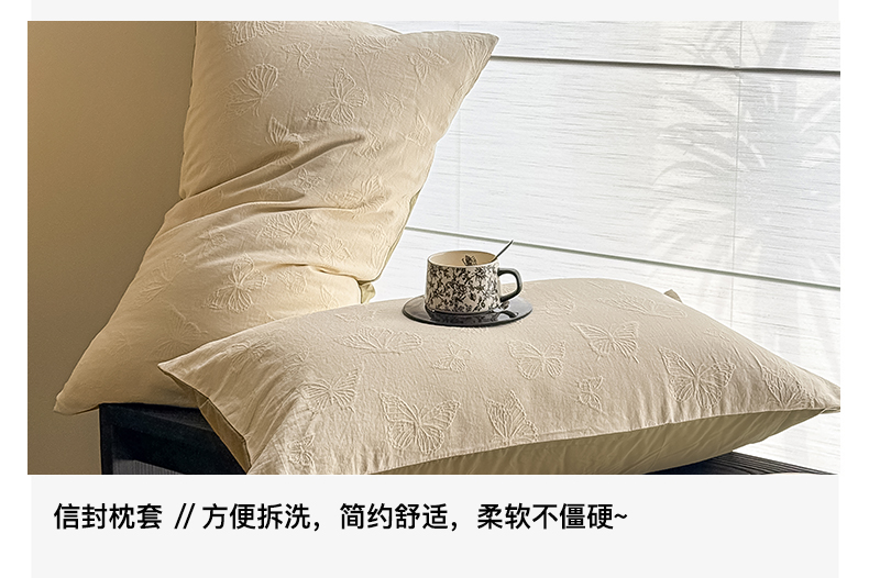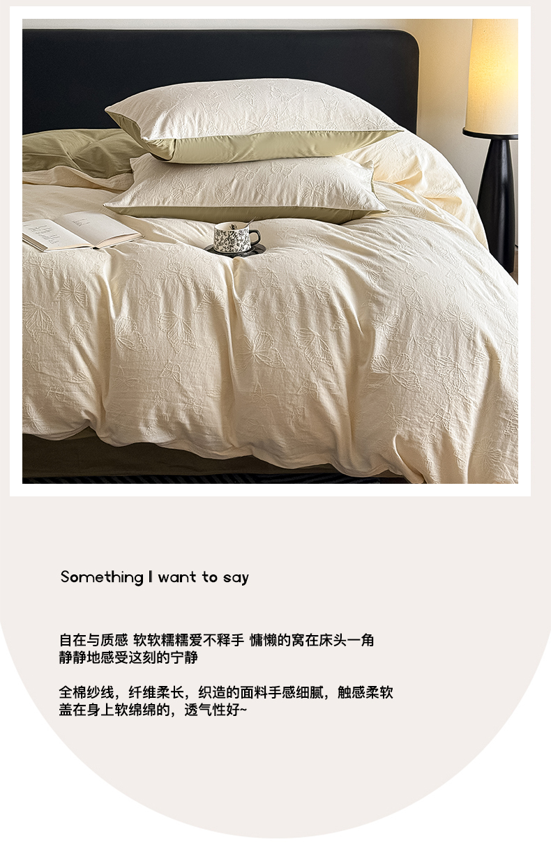 商品名称:水云缦 2025新款水云缦全棉三层纱色织大提花四件套 蝶舞-米白
