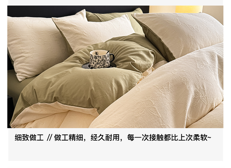 (总)水云缦 2025新款米粒绒全棉双层纱大拼角四件套,米粒绒-抹茶绿,米粒绒-莫兰迪蓝,米粒绒-奶茶咖,米粒绒-藕粉,米粒绒-香芋紫