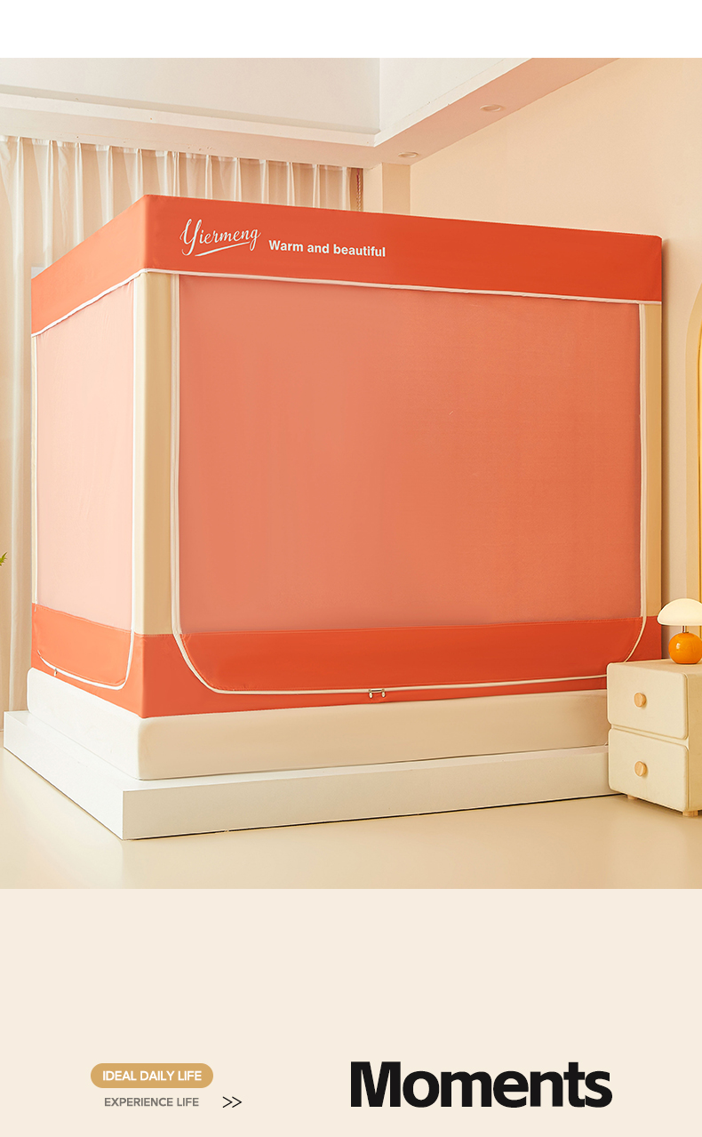 (总)伊而梦蚊帐 2025新款加高防蚊遮光床帘款坐床蚊帐,活力橙,宁静蓝,暖心黄,清新绿