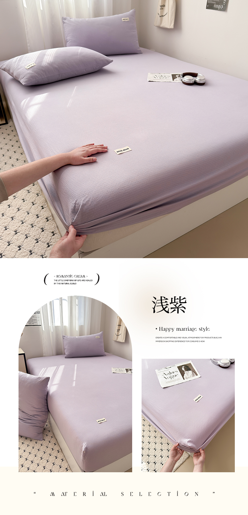 商品名称:罗亿家纺 2025新款云感提花双层纱单床笠 浅紫床笠