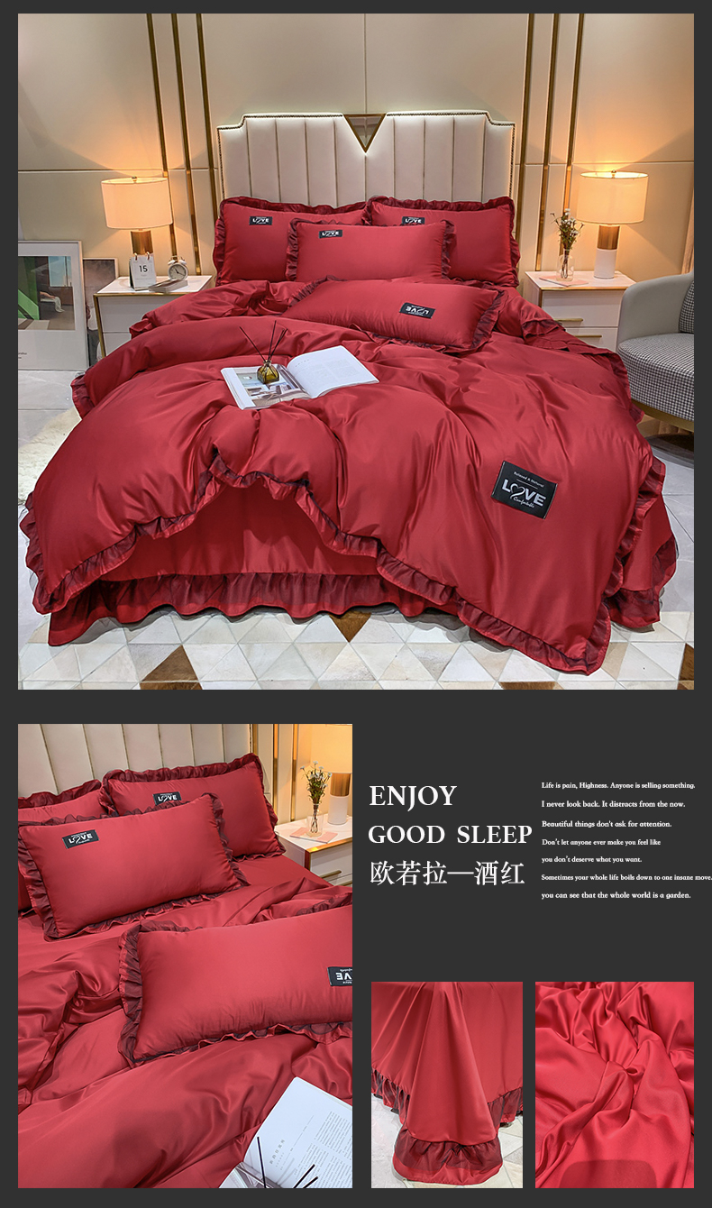 商品名称:(总)(买家秀不断货)A类高端皇室贵族韩版水洗真丝四件套轻奢四件套轻奢水洗蕾丝四件套高级感丝滑裸睡床上用品