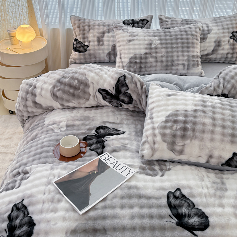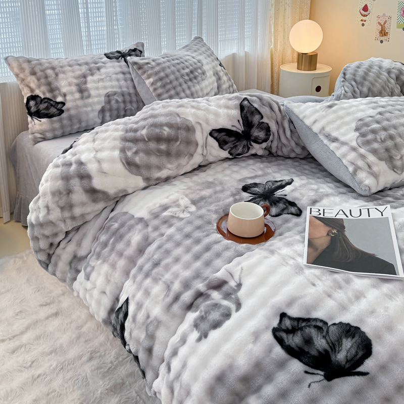 买家秀 不断货)A类母婴级兔兔绒被套大泡泡牛奶绒被套四件套珊瑚绒被套雪花绒被套兔兔绒牛奶绒被套三件套 被套毯-蝶影