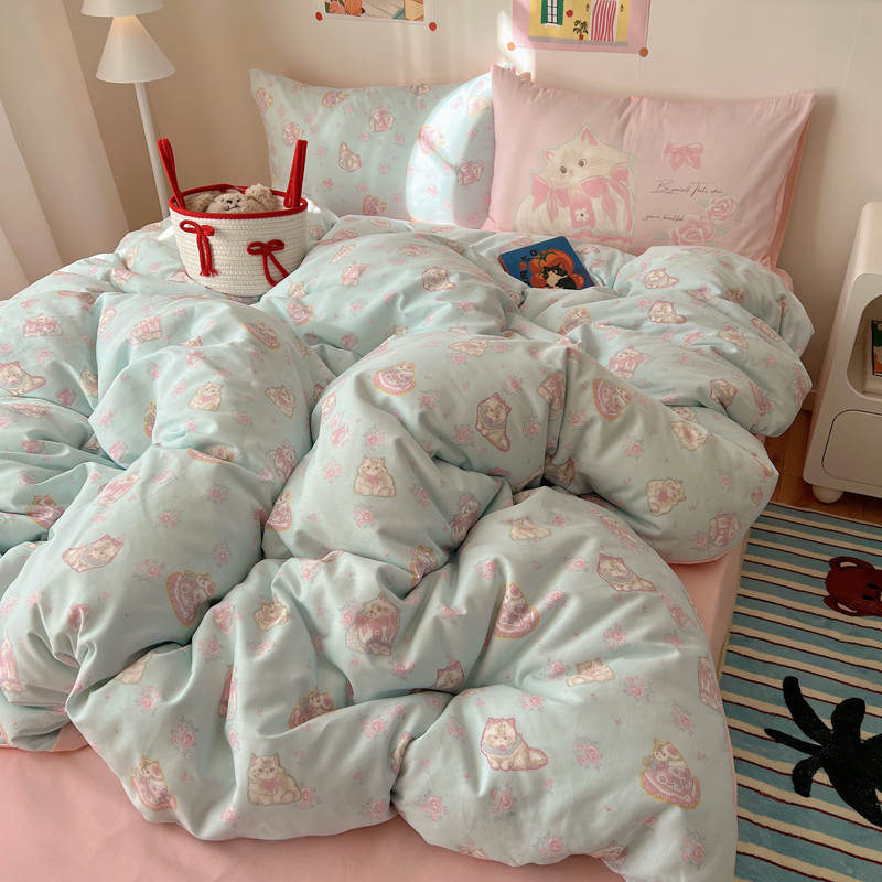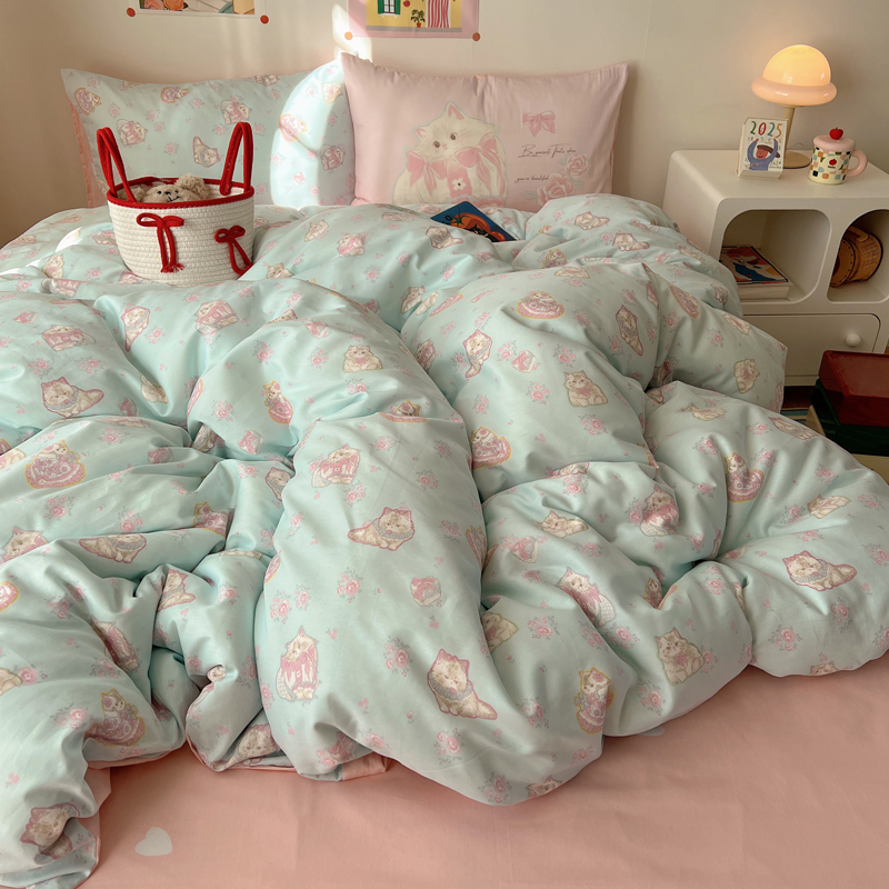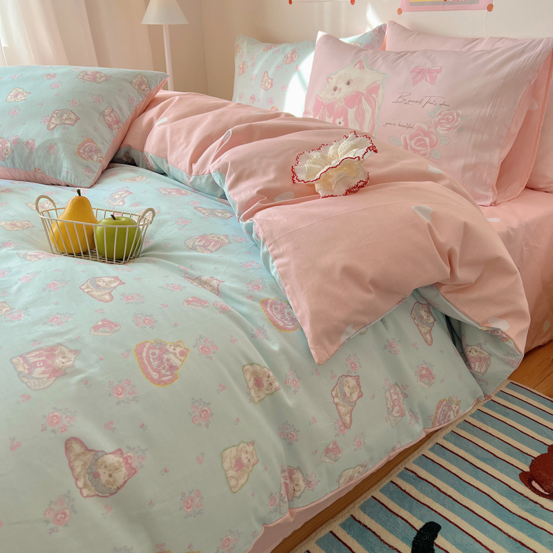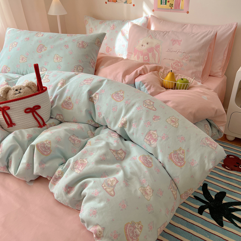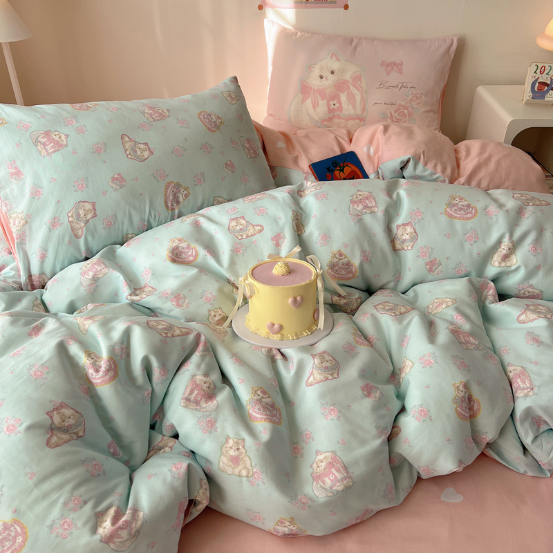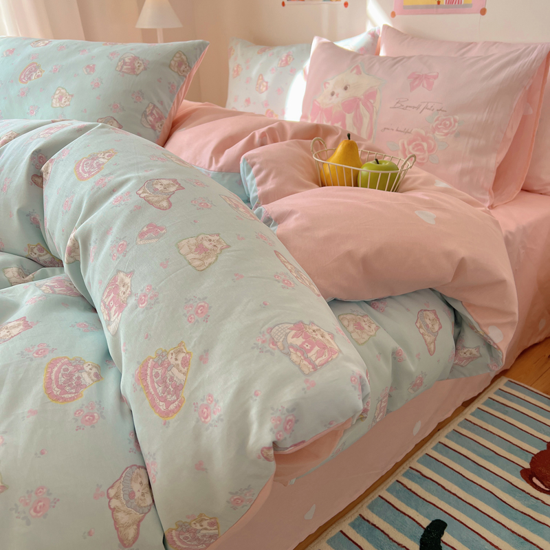 桃喜 2025春夏新款全棉卡通混搭13070系列四件套 洛丽塔小猫