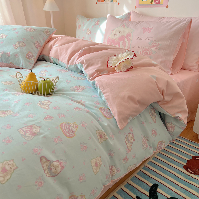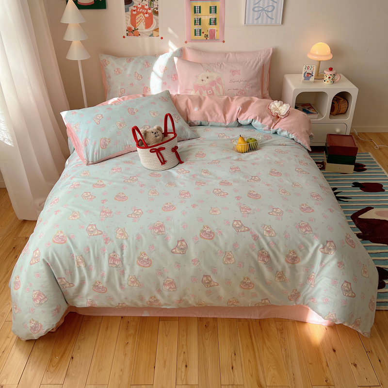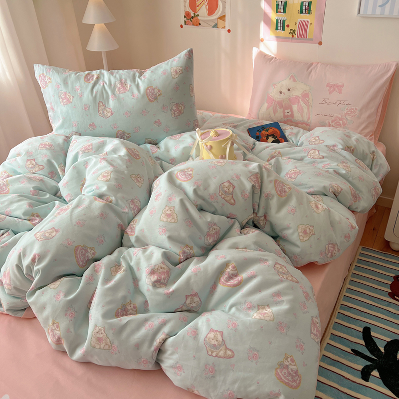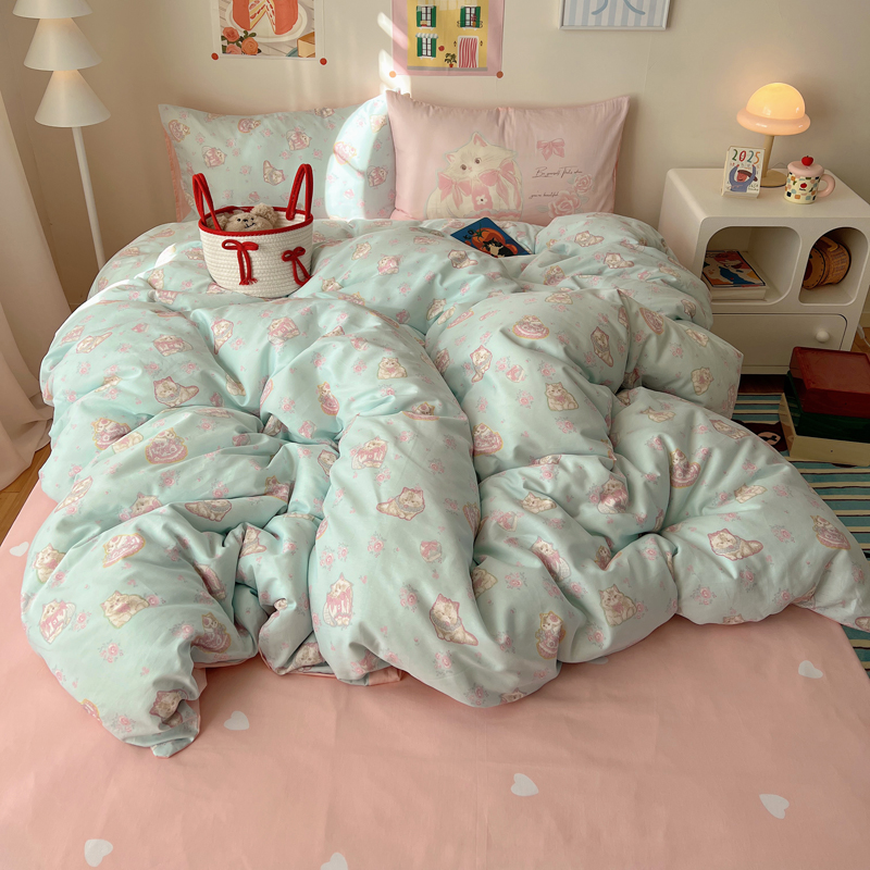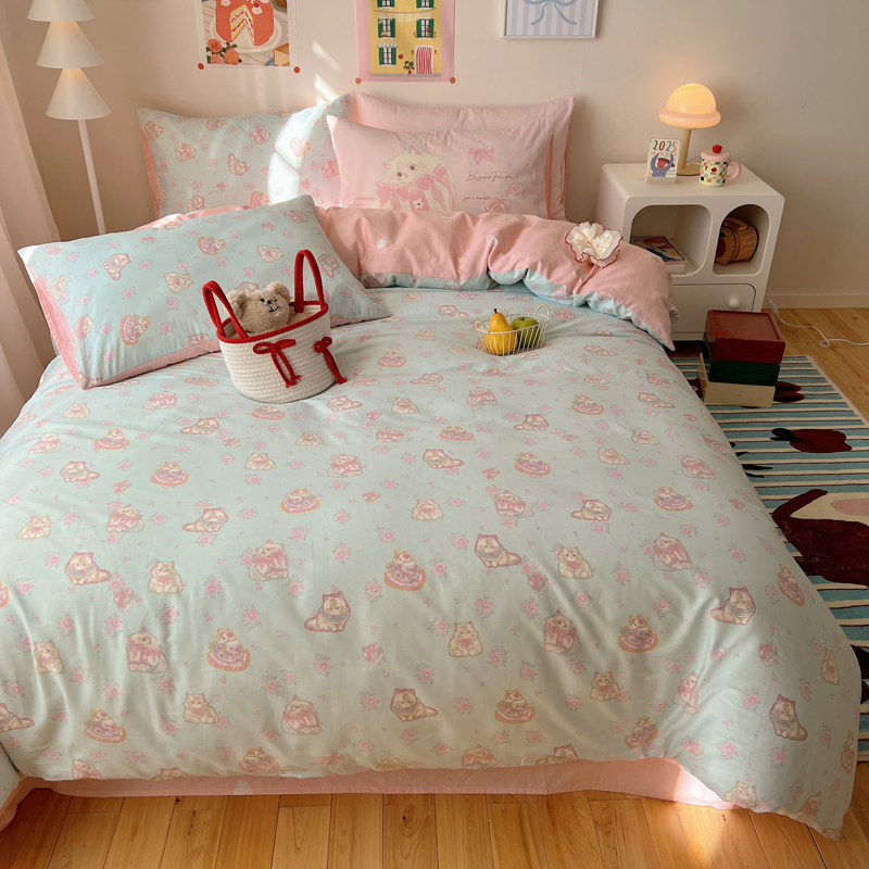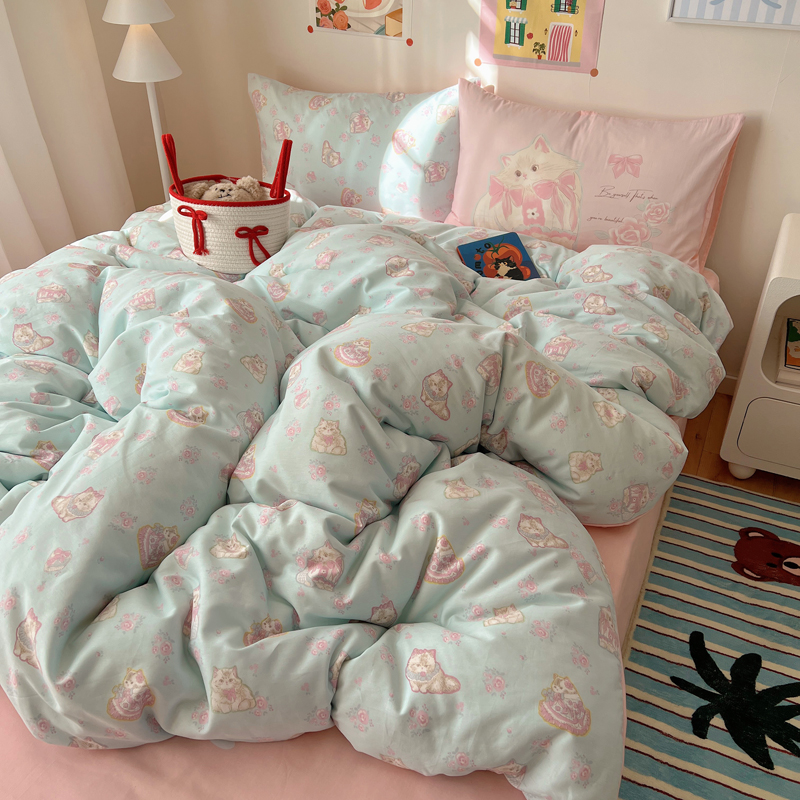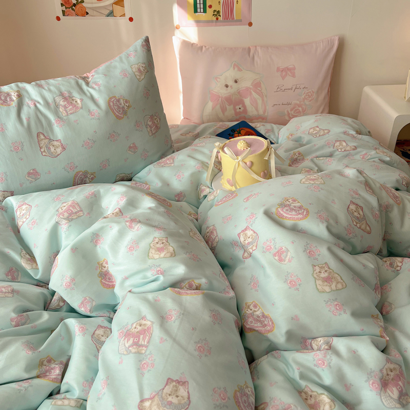 桃喜 2025春夏新款全棉卡通混搭13070系列四件套 洛丽塔小猫