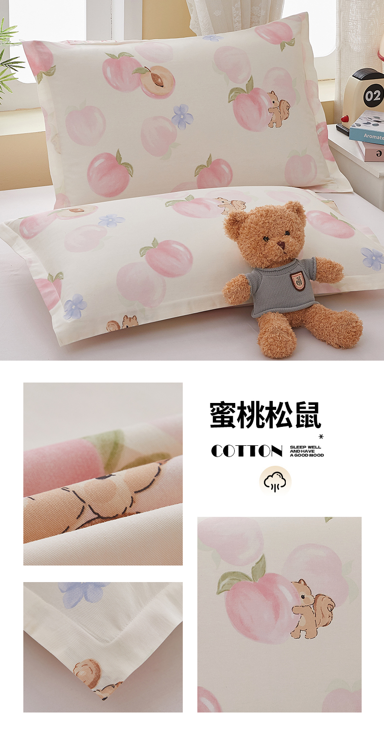 翎盈家纺 2025新款ins风小清新纯棉印花枕套 蜜桃松鼠