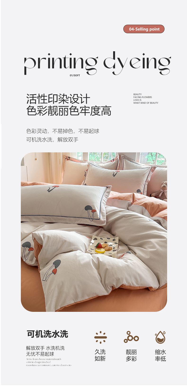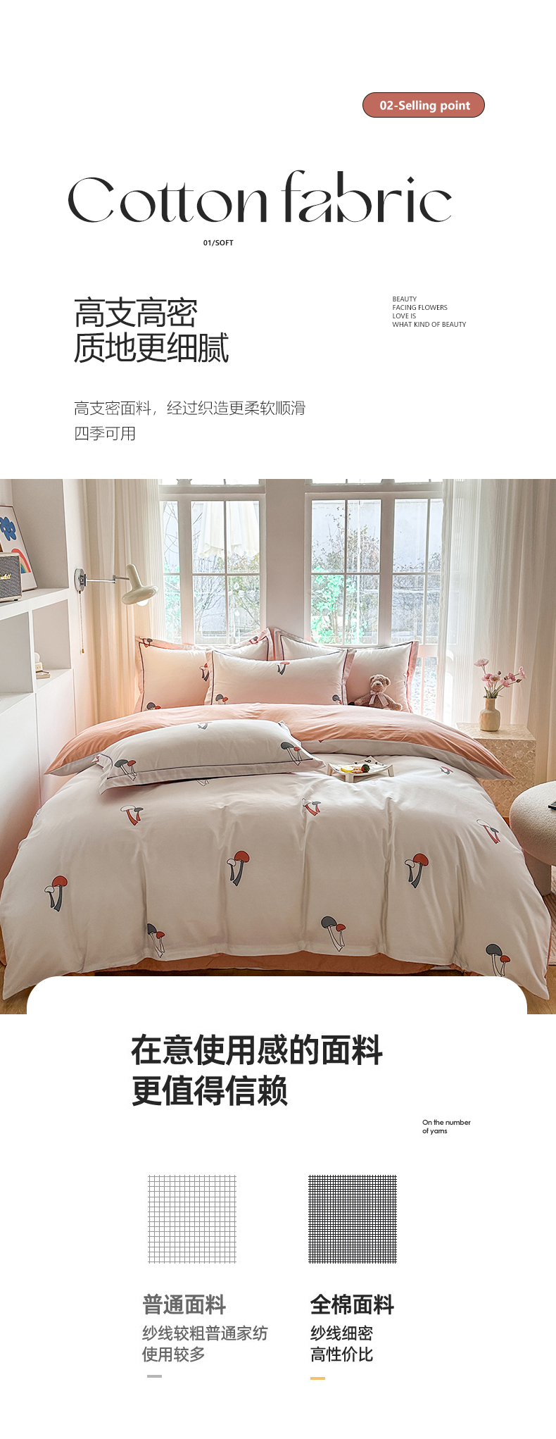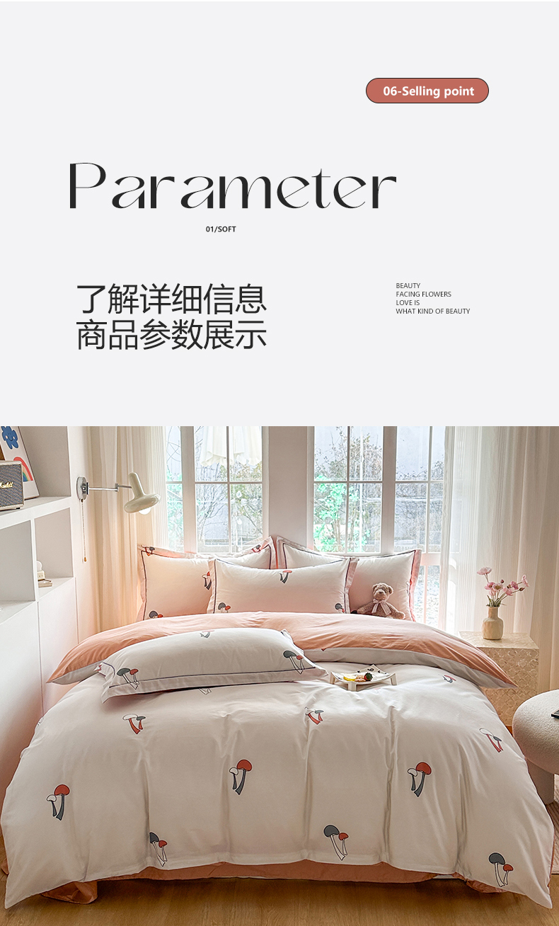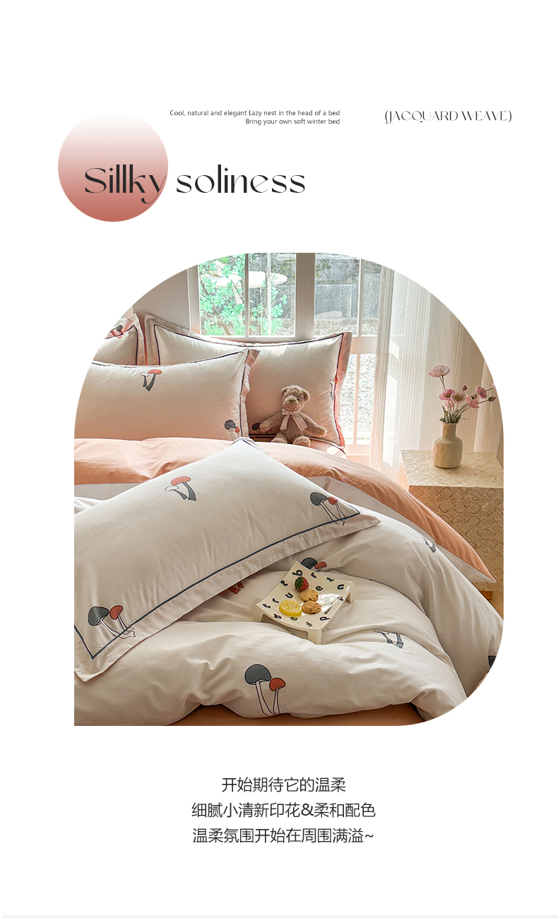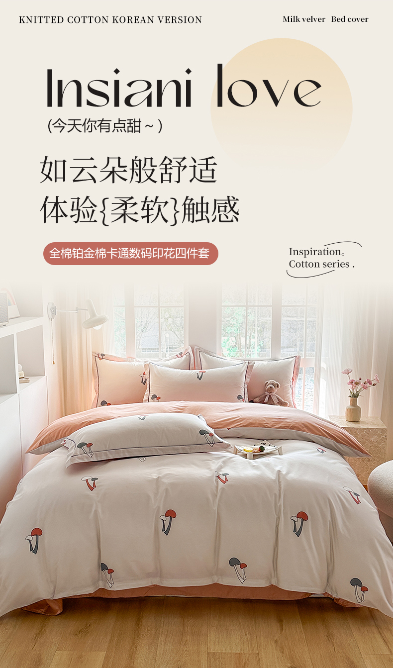 当前位置: 91家纺网 > 商品网购 > 床品套件 > 四件套 > 全棉普通四件套 > 眷恋家纺 2025年春夏全棉铂金棉13376数码印花四件套 蘑菇街-米(有小号)