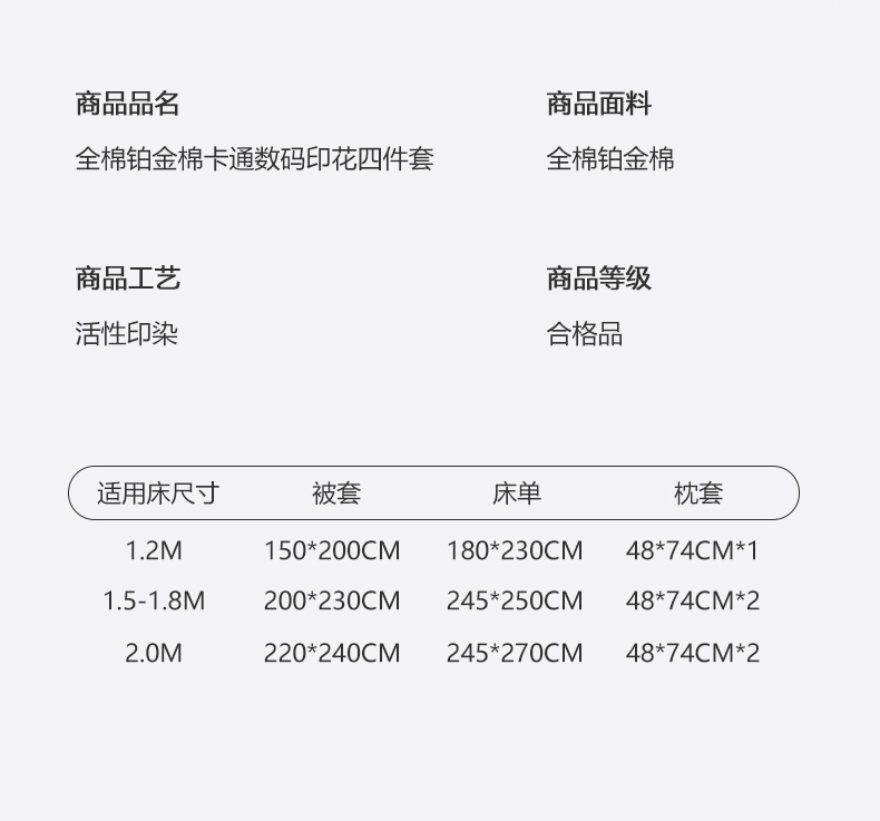 1.8m床笠款四件套 | ¥140.00 |