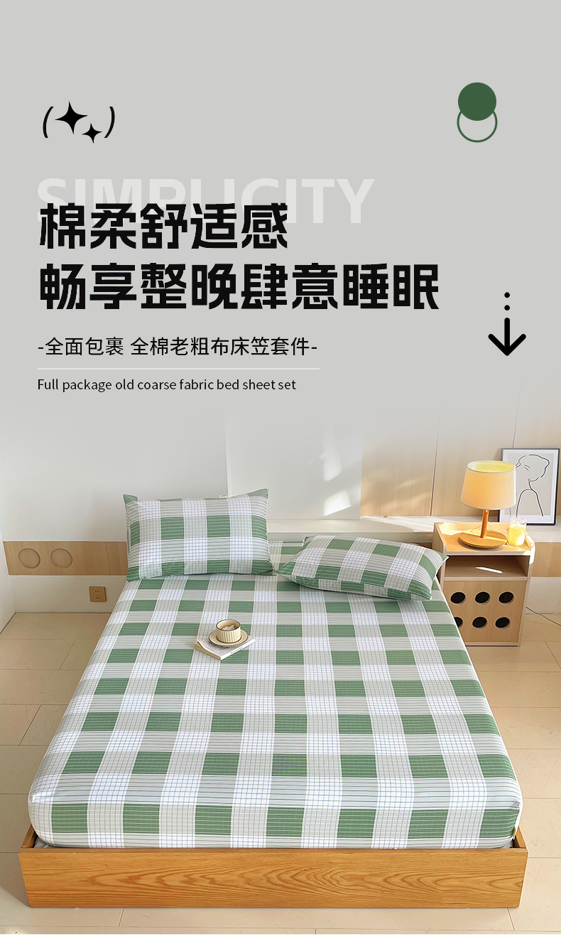 • 91家纺网 家纺一手货源 找家纺 ME/ERA HOME寐时代 2025新款全棉老粗布床笠款三件套 全棉条格-格律-豆沙