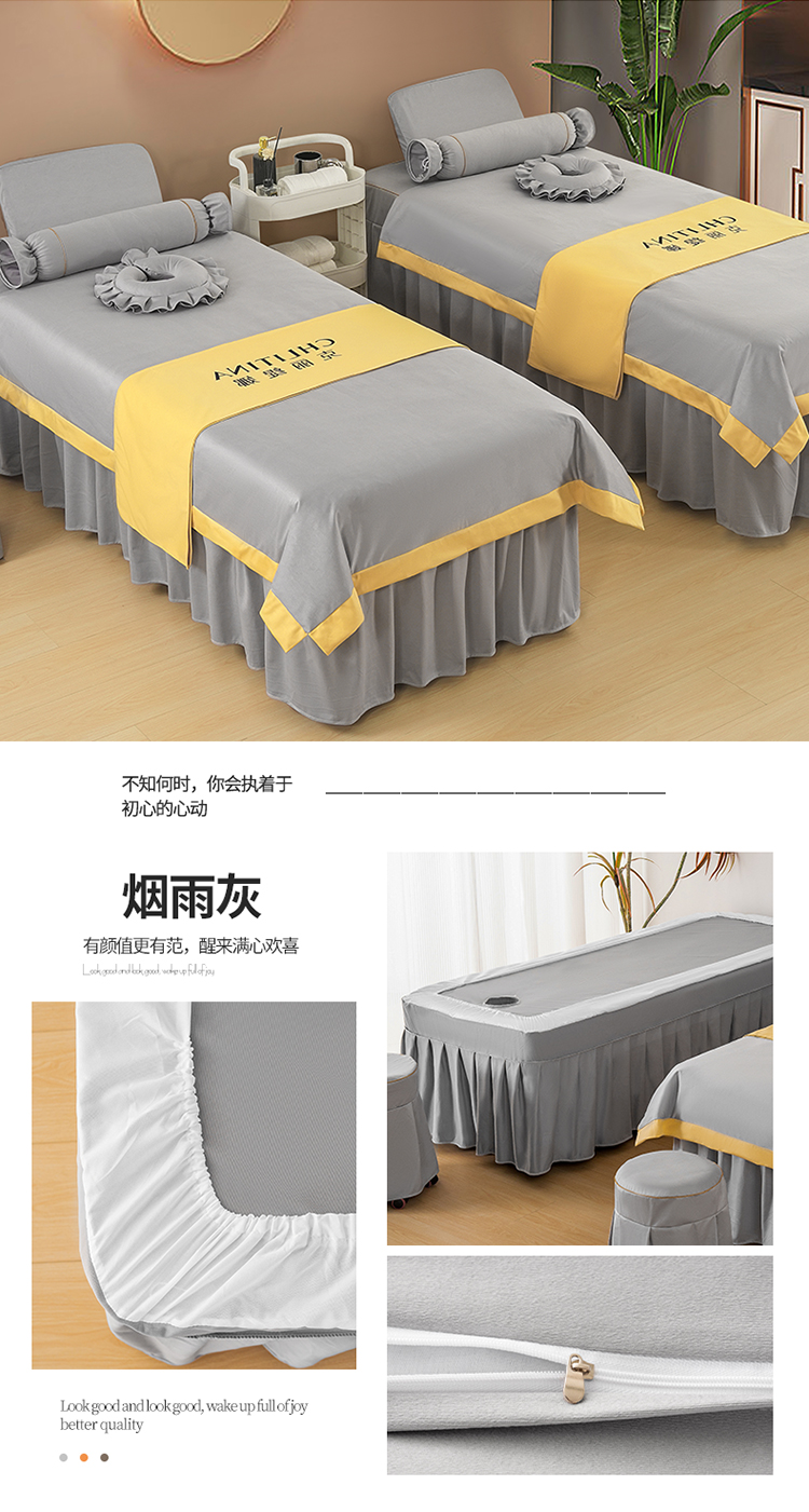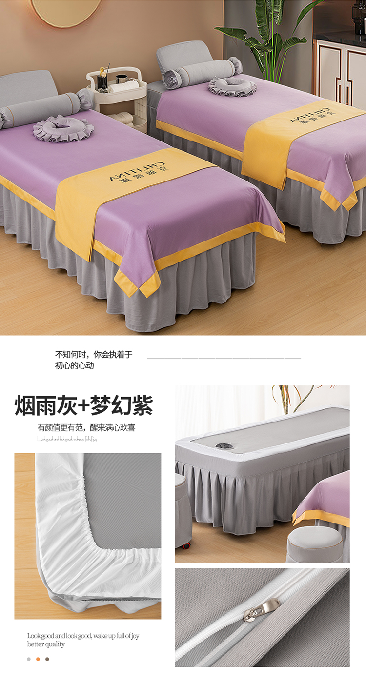 (总)梦来美家纺 2025新款荷兰尼美 容床罩(控价175元)风格四,白配灰,灰,黄配灰,紫配灰,黄,紫