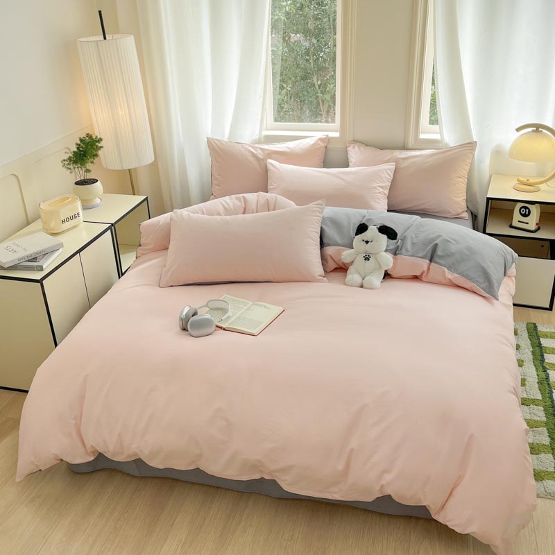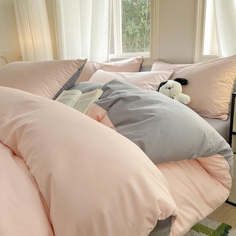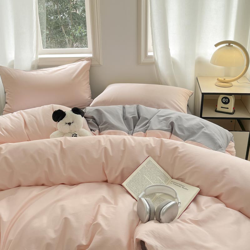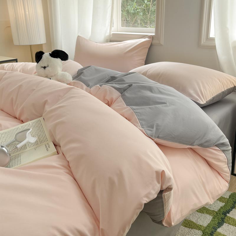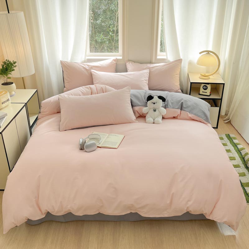 当前位置: 91家纺网 > 商品网购 > 床品套件 > 四件套 > 全棉普通四件套 > 泽西家纺2025新款A类全棉双拼纯色纯棉单被套 樱粉+深灰