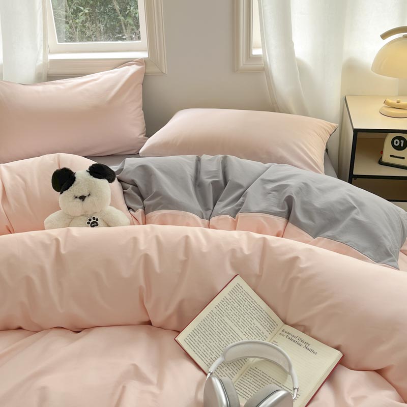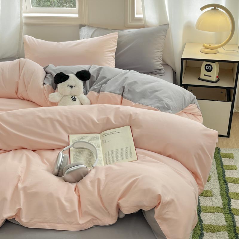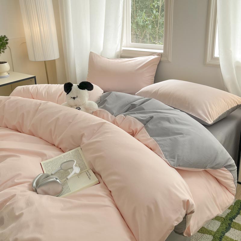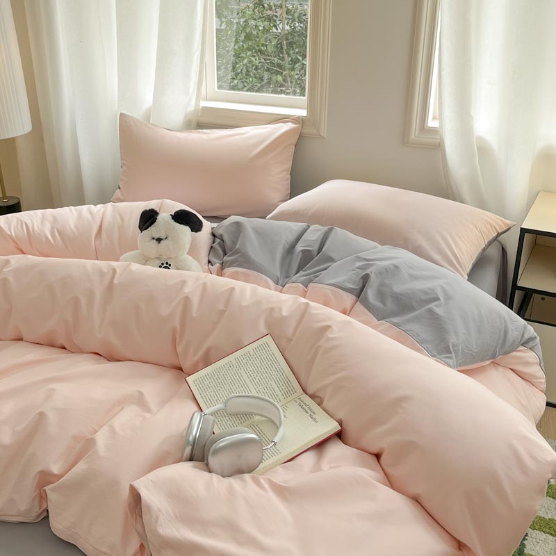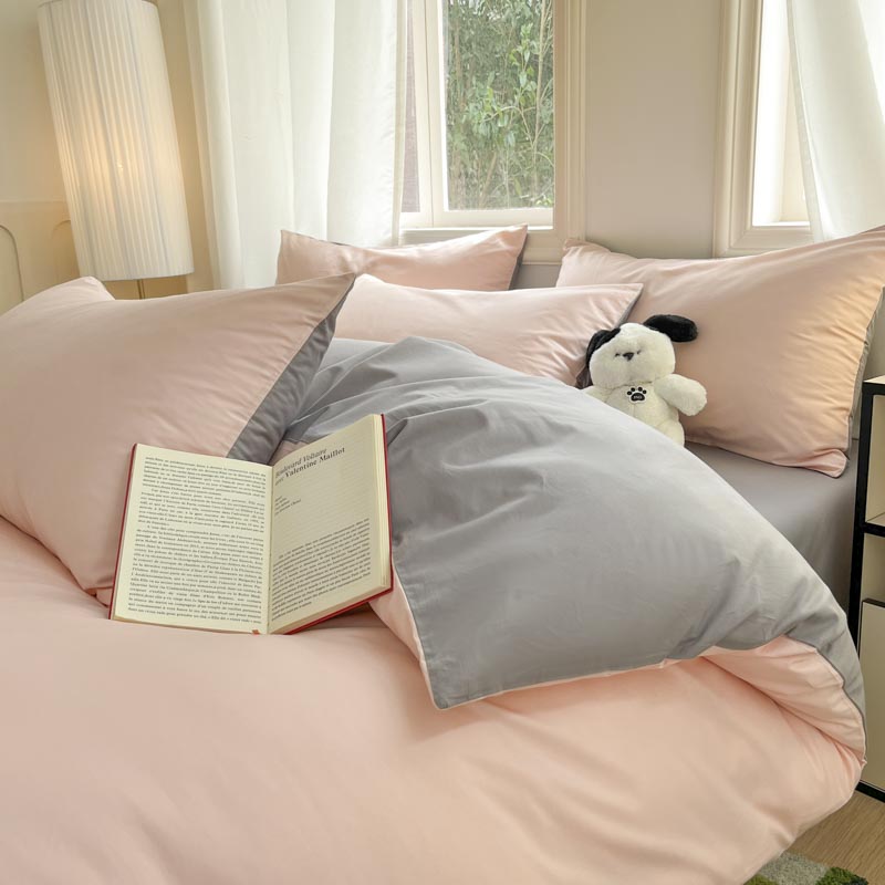 当前位置: 91家纺网 > 商品网购 > 床品套件 > 四件套 > 全棉普通四件套 > 泽西家纺2025新款A类全棉双拼纯色纯棉单被套 樱粉+深灰