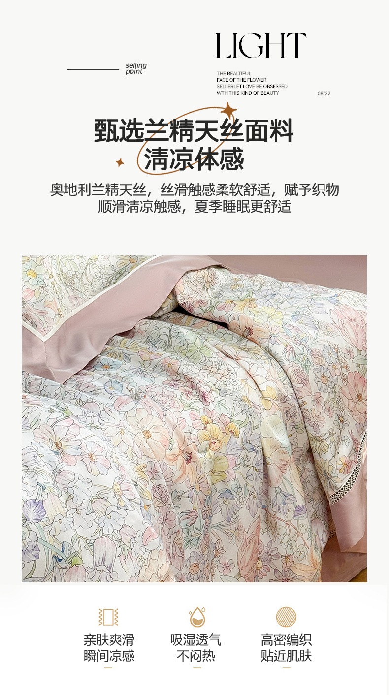 商品名称:娇逸家居 2025新品60支天丝数码印花高端夏被四件套 妙颜-粉