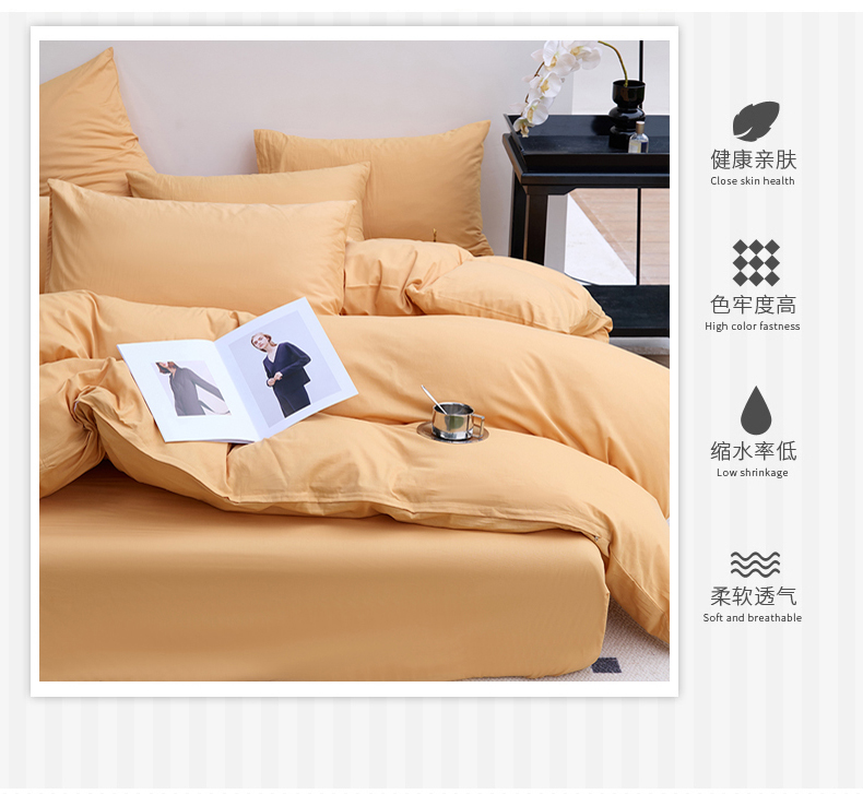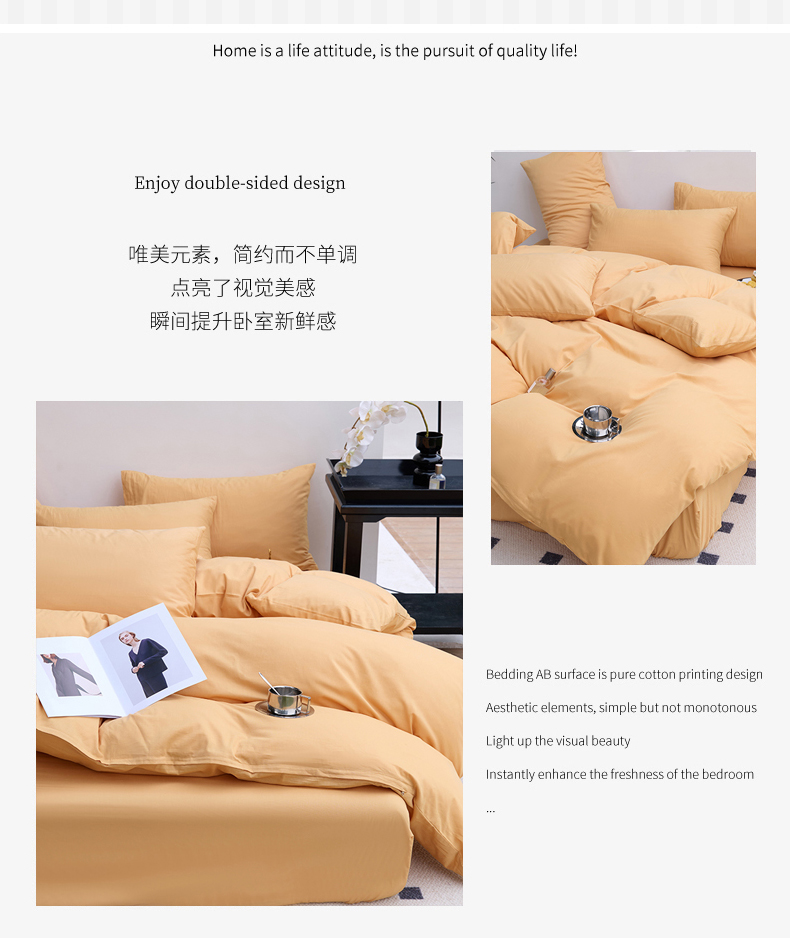(总)期遇2025新款全棉13374纯色四件套,粉玉,海棠红,幻影灰,橘黄,卡其,嫩绿,苹果绿,青蓝,香芋紫,洋红