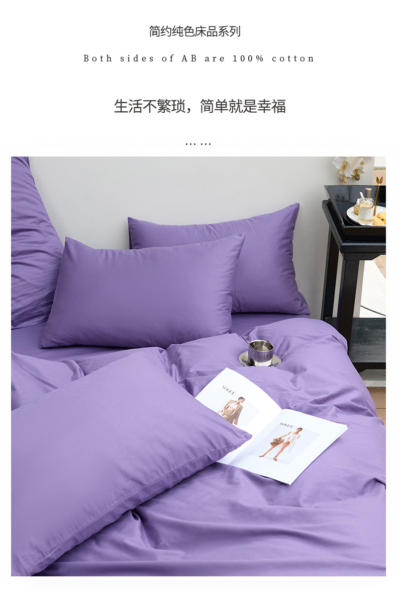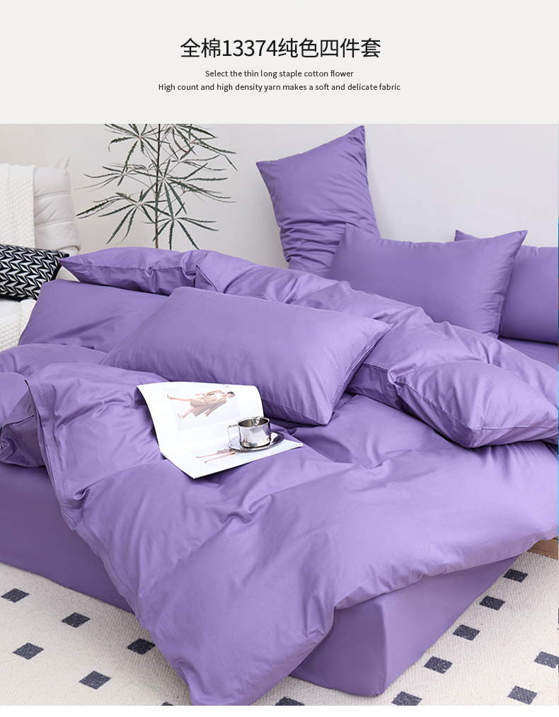 期遇2025新款全棉13374纯色四件套 香芋紫