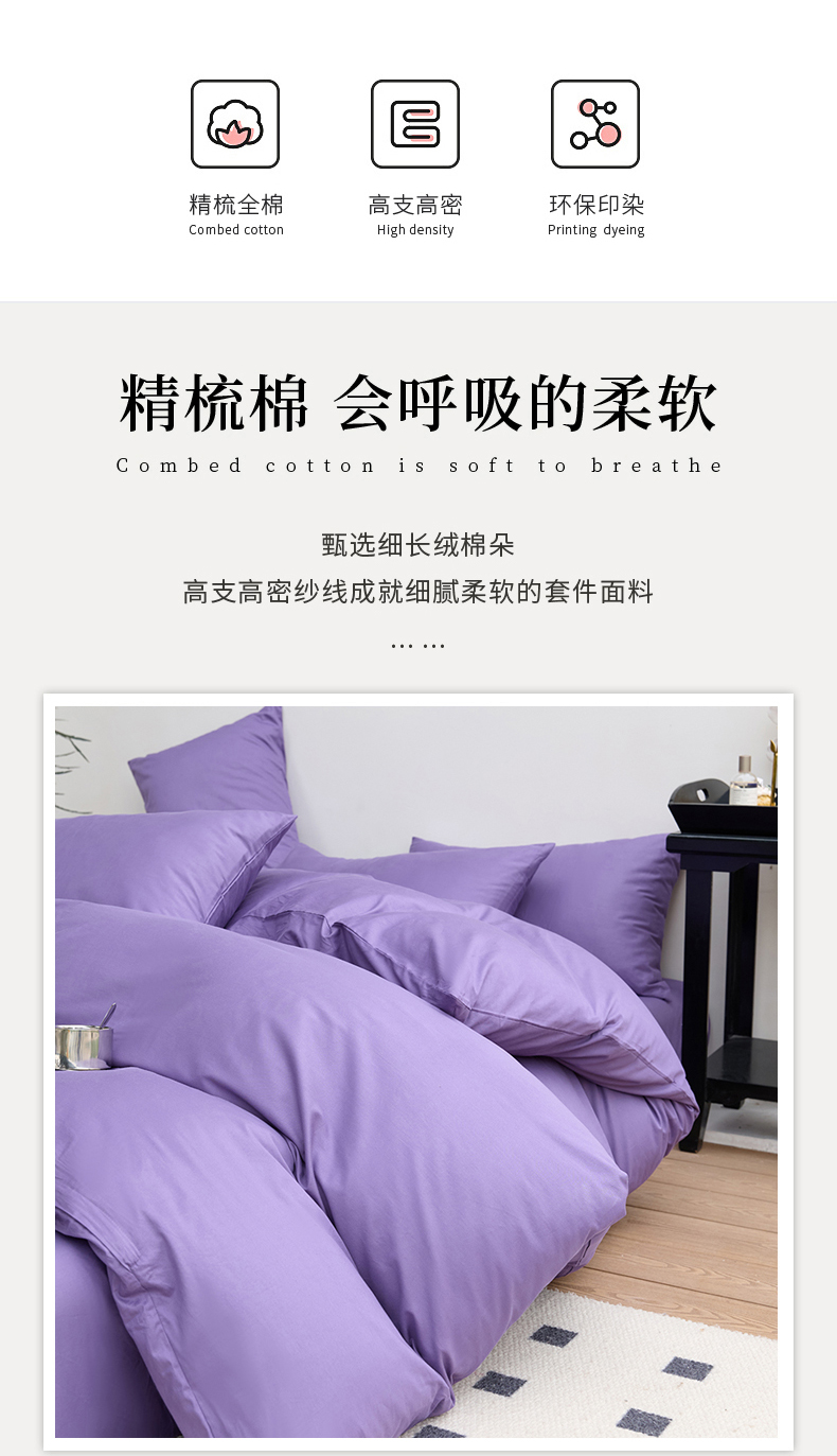 商品名称:期遇2025新款全棉13374纯色四件套 香芋紫