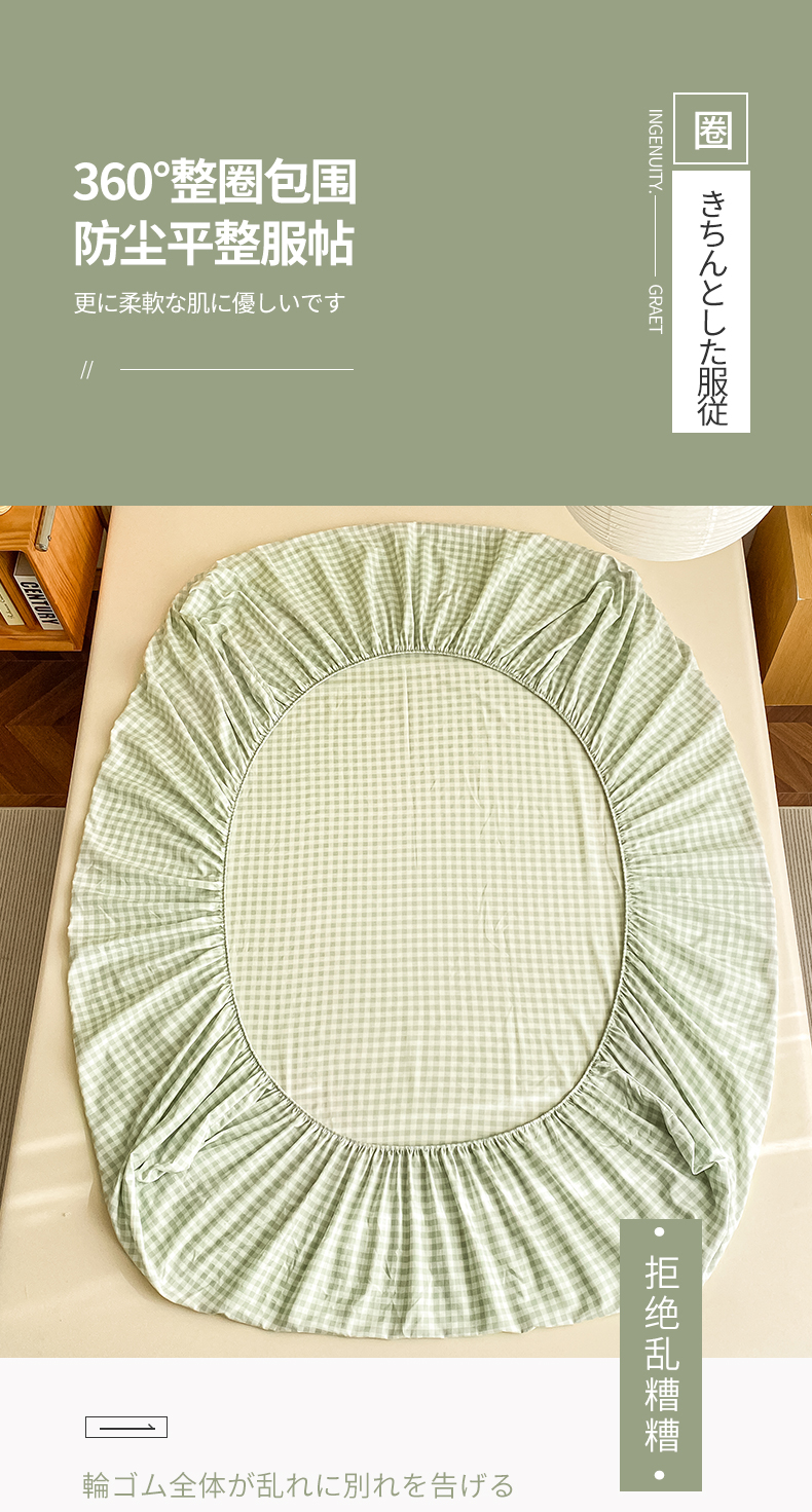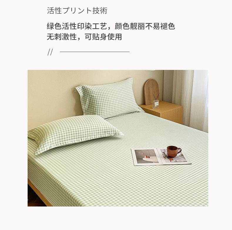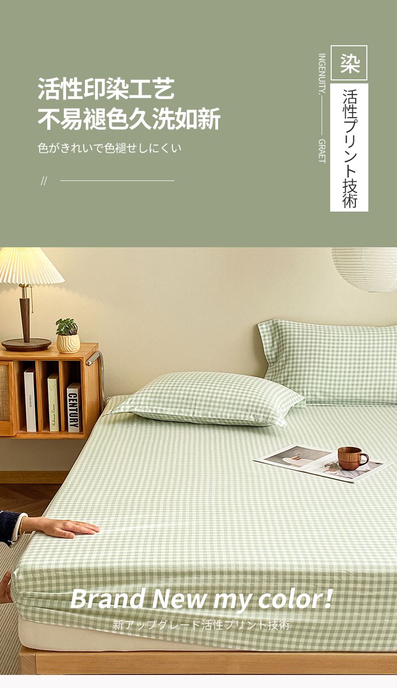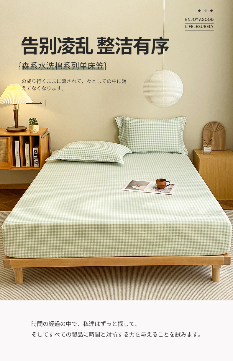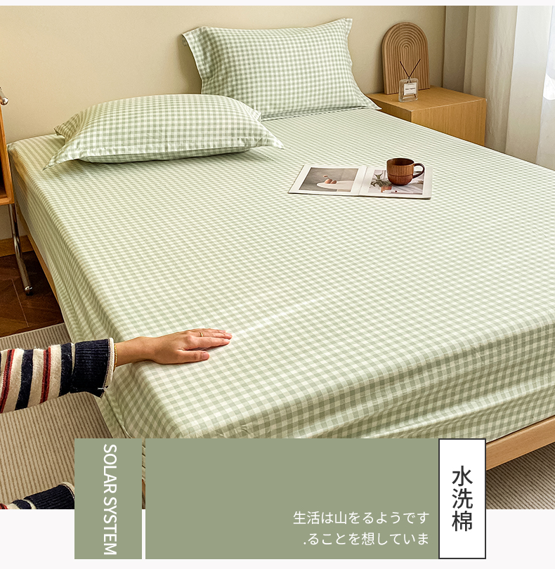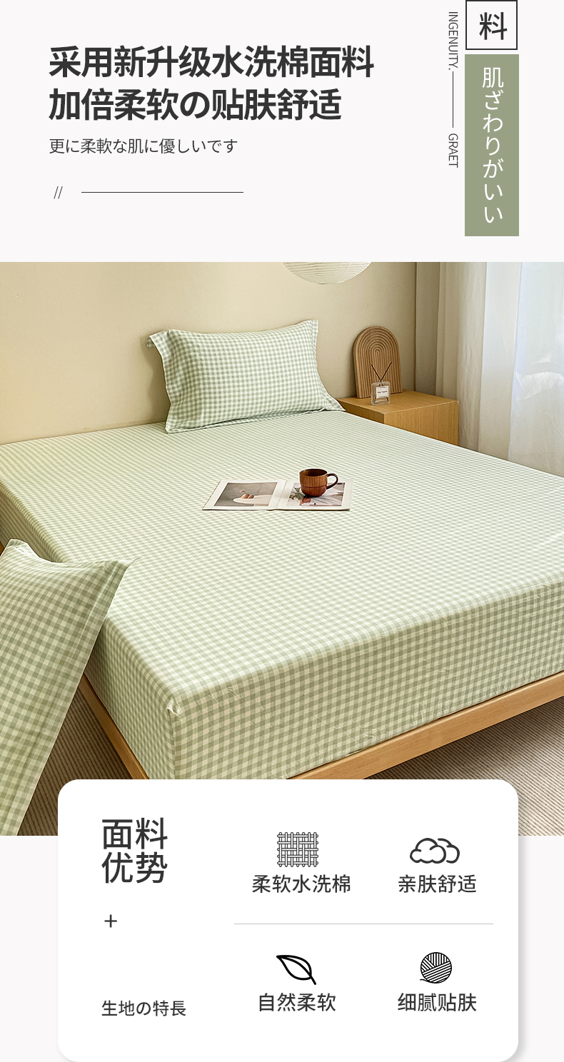恬澳家纺 2025新款森系水洗棉无印风单床笠场景三 森系-绿格