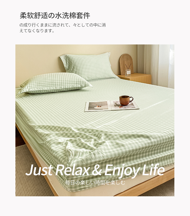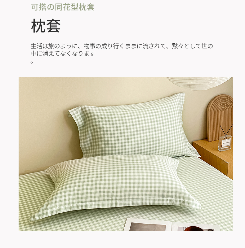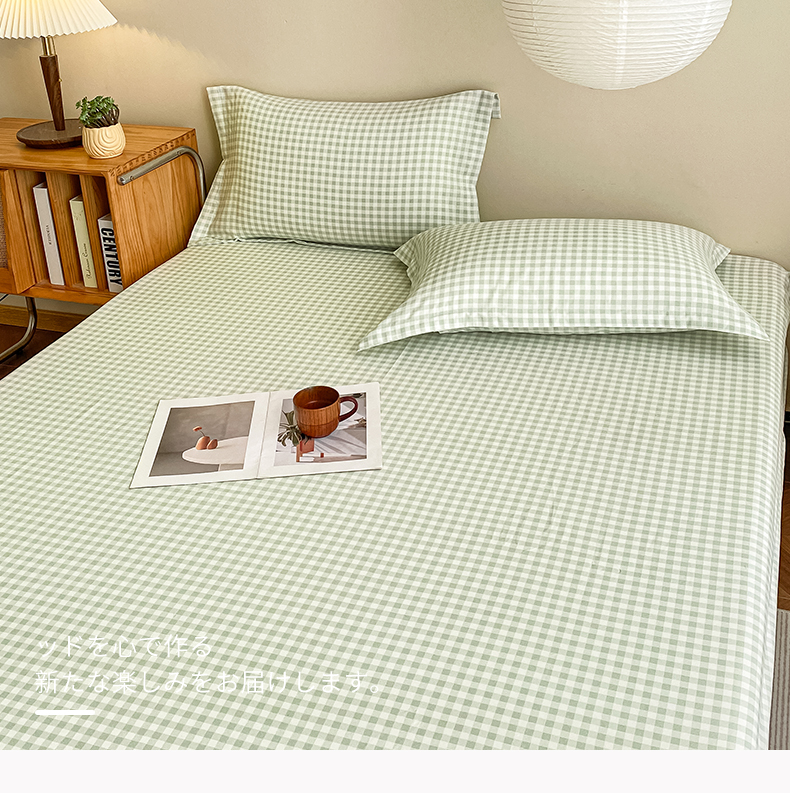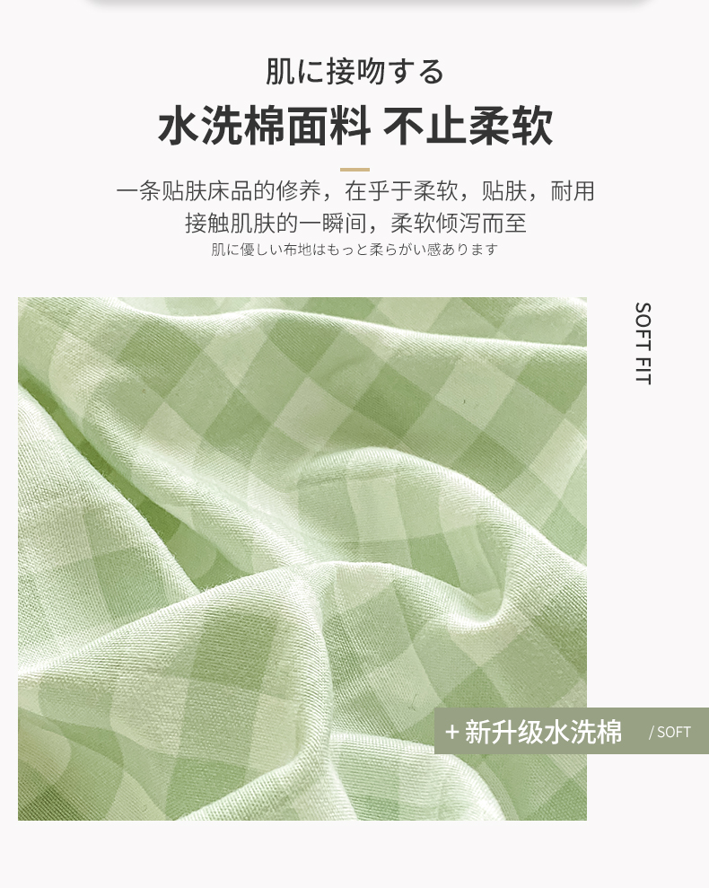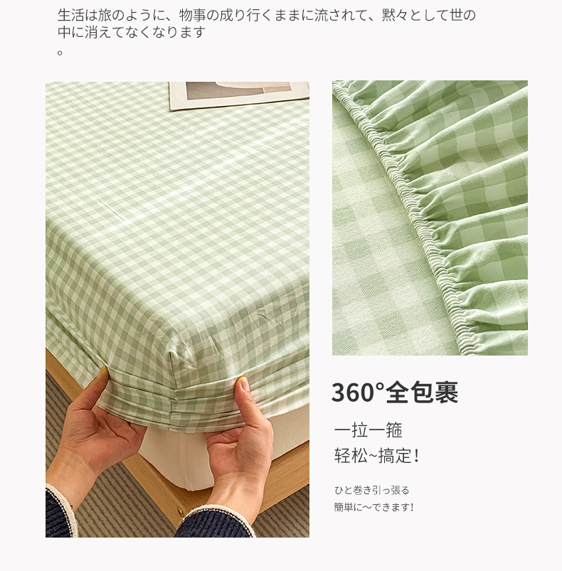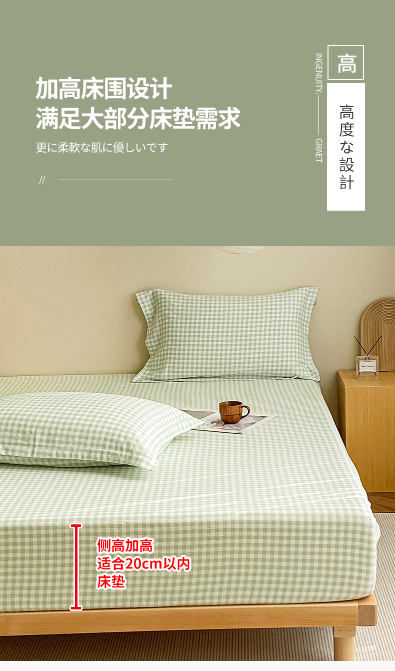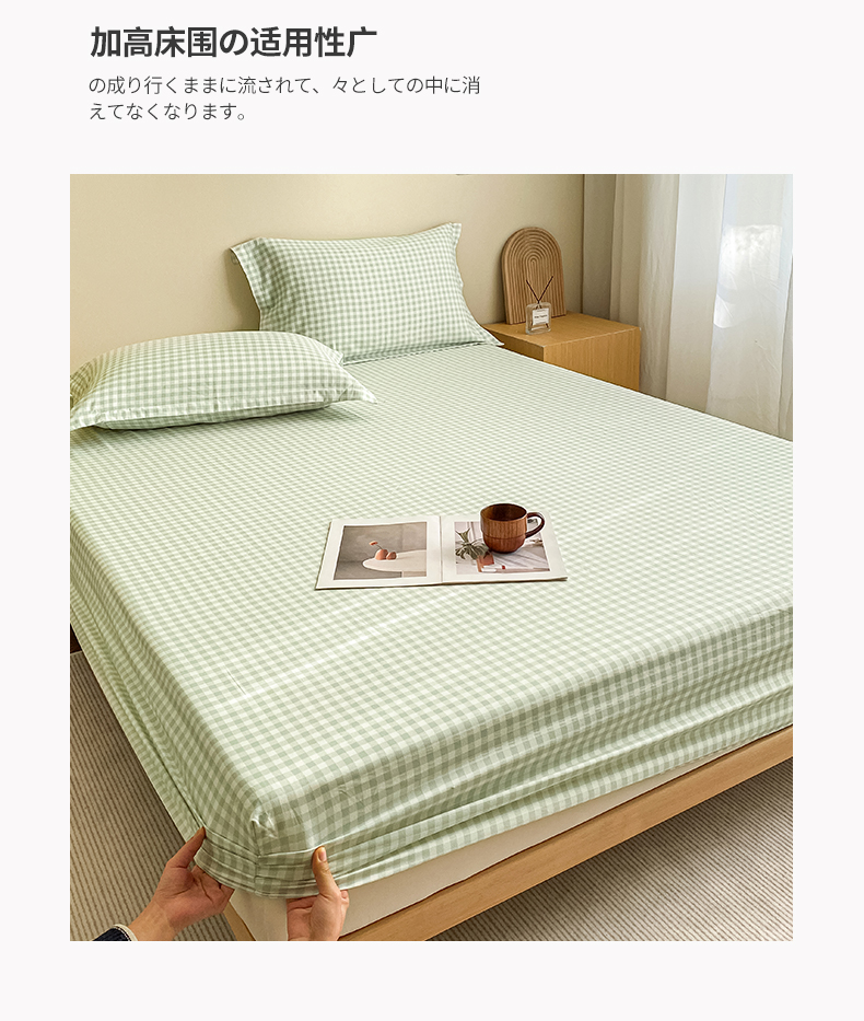 恬澳家纺 2025新款森系水洗棉无印风单床笠场景三 森系-绿格