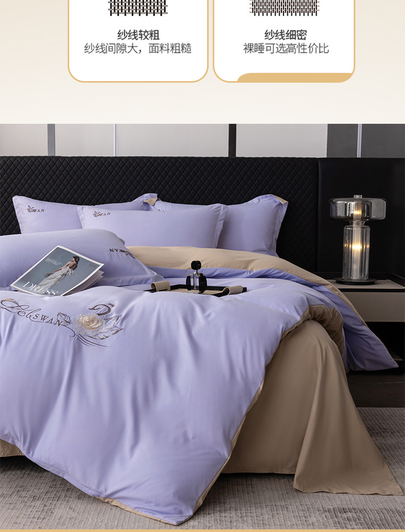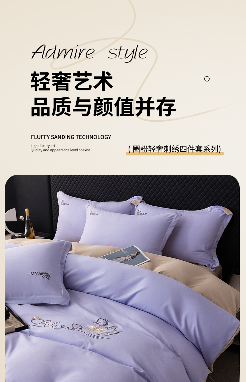 当前位置: 91家纺网 > 商品网购 > 床品套件 > 四件套 > 水洗棉四件套 > 丫丫家纺 2025纯色绣花四件套 花梦-紫色+卡其