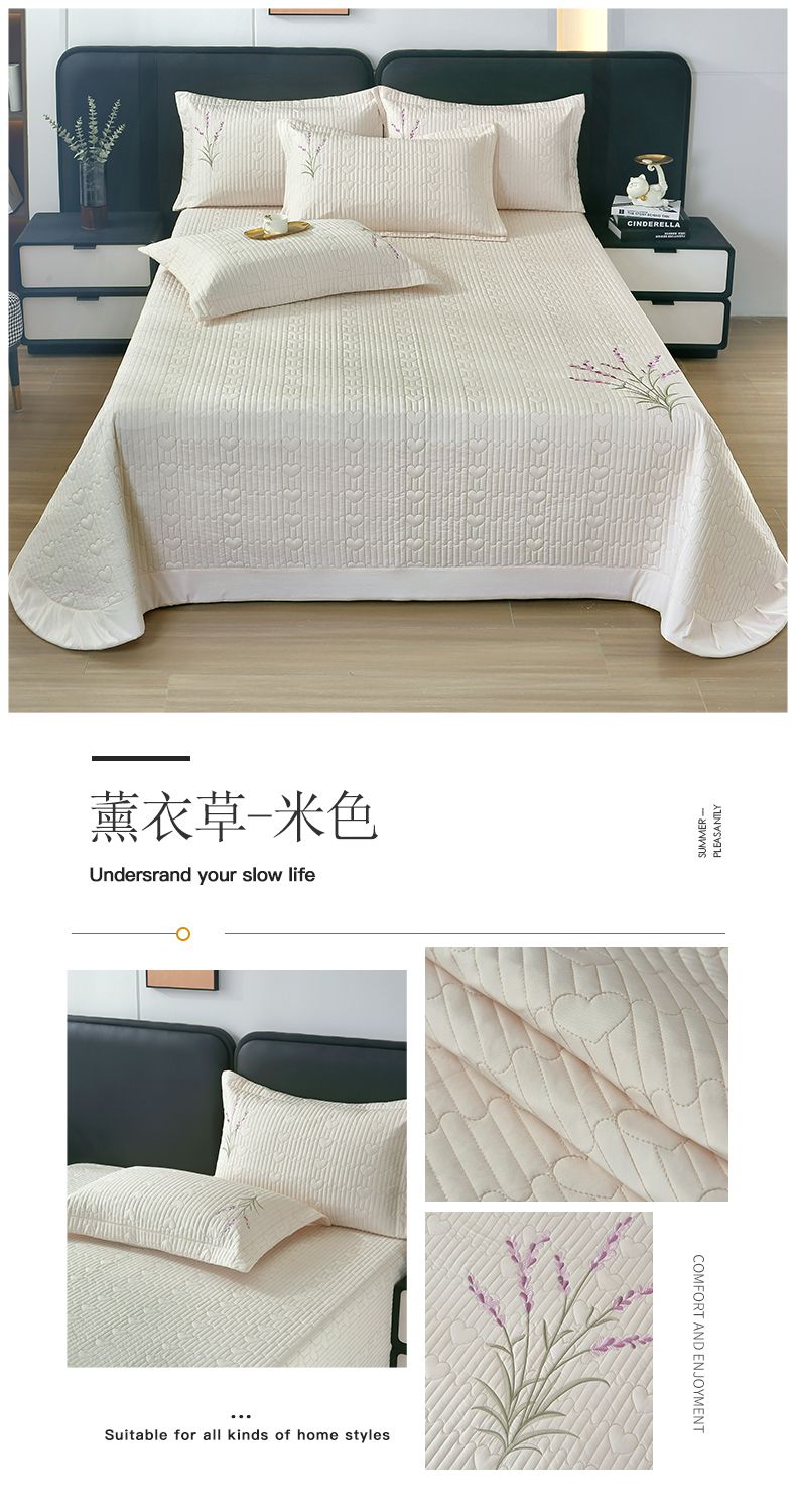 商品名称:OL家纺2025新款玉锦缎纯色床盖三件套-薰衣草 米色