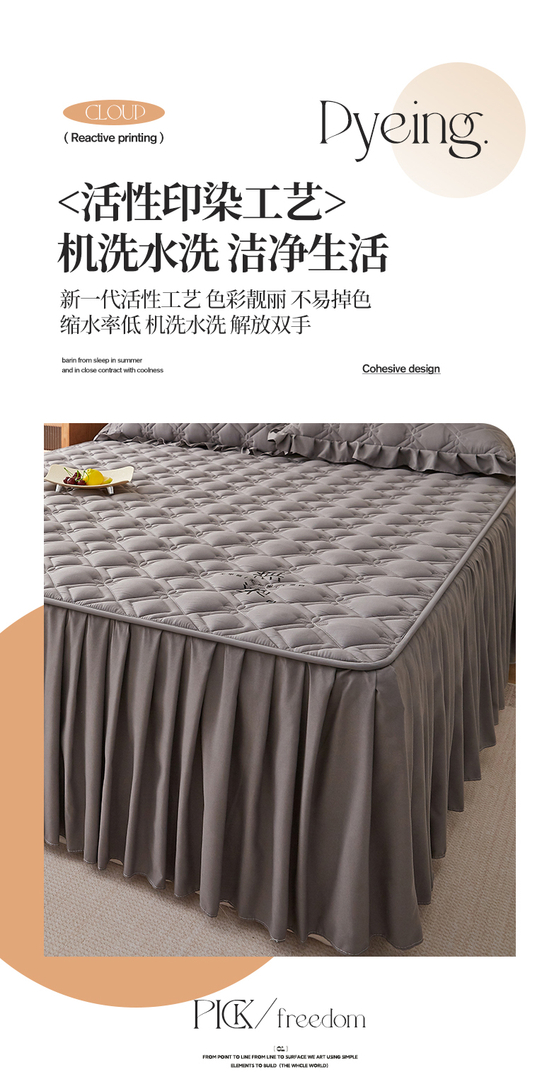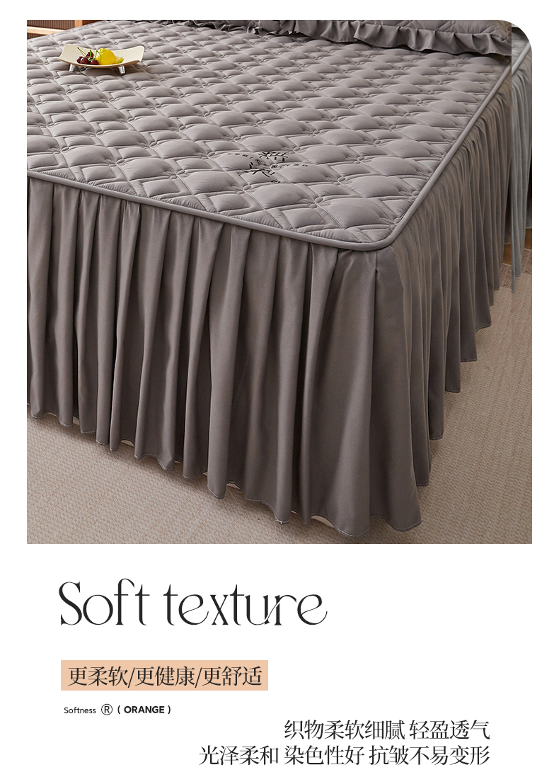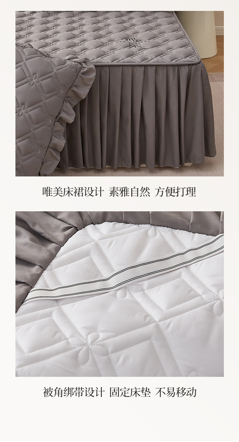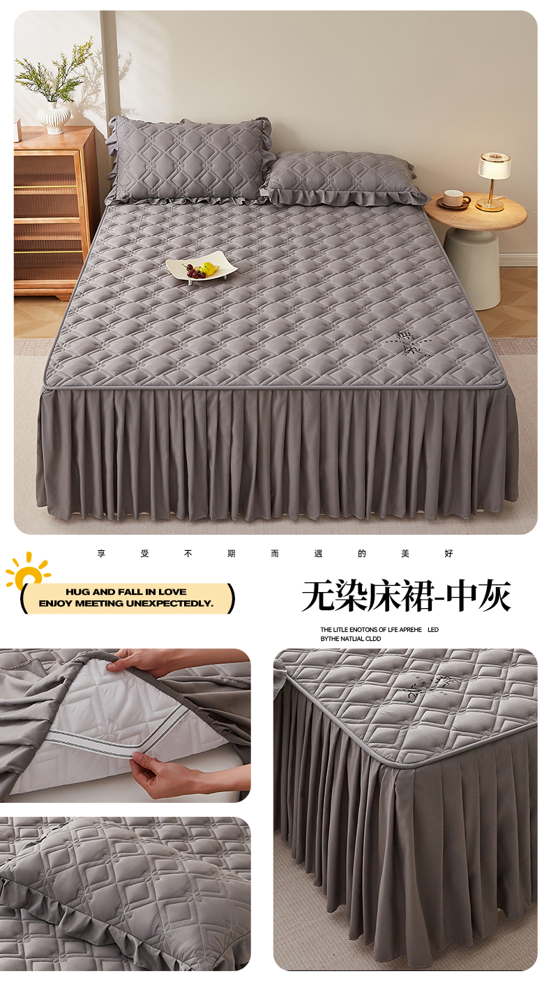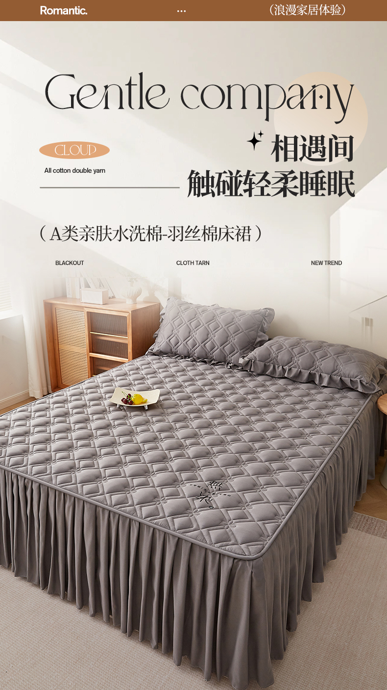 • 91家纺网 家纺一手货源 找家纺 东宇 2025年新款A类亲肤水洗棉-羽丝棉床裙 无染床裙-中灰