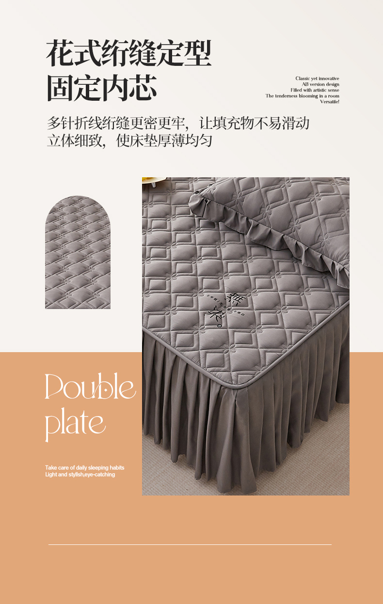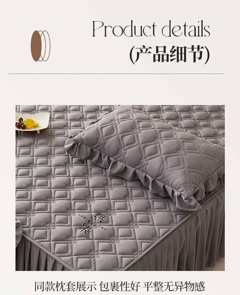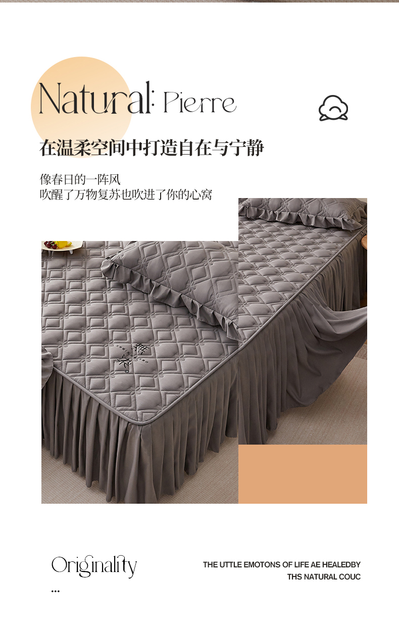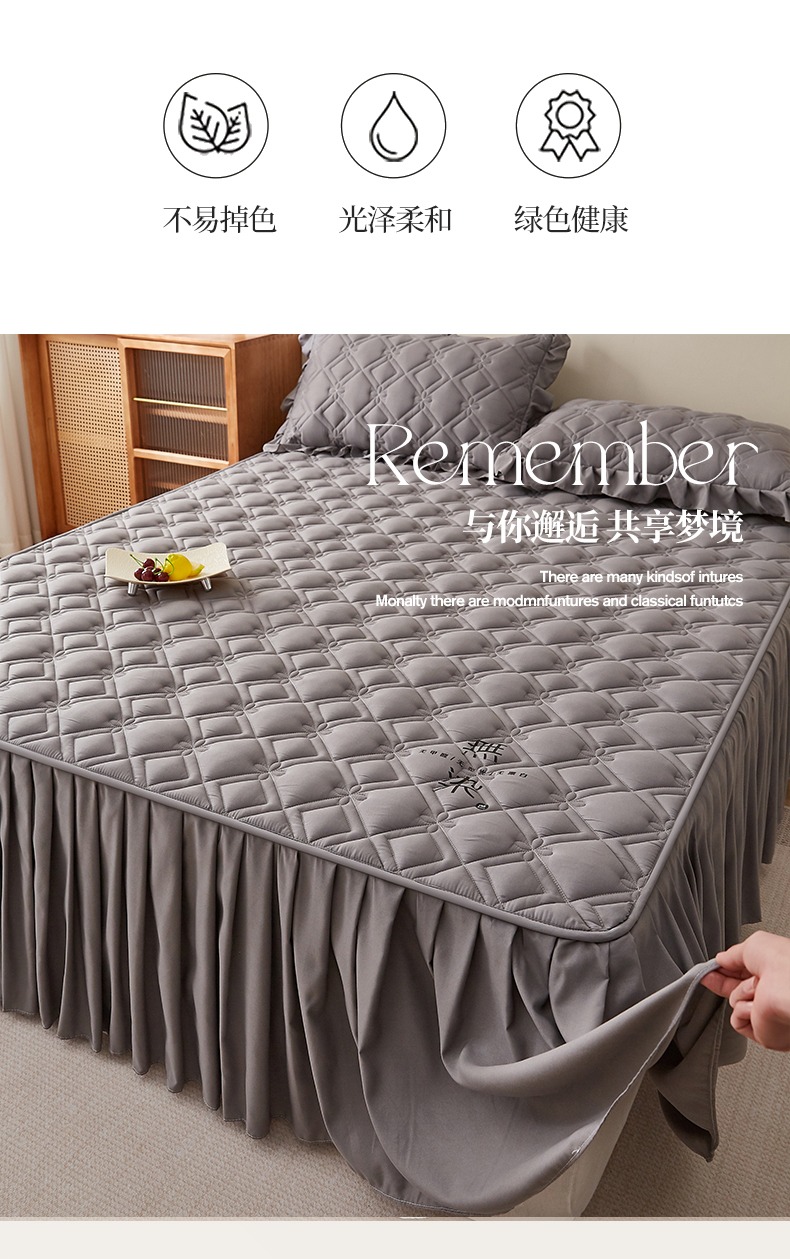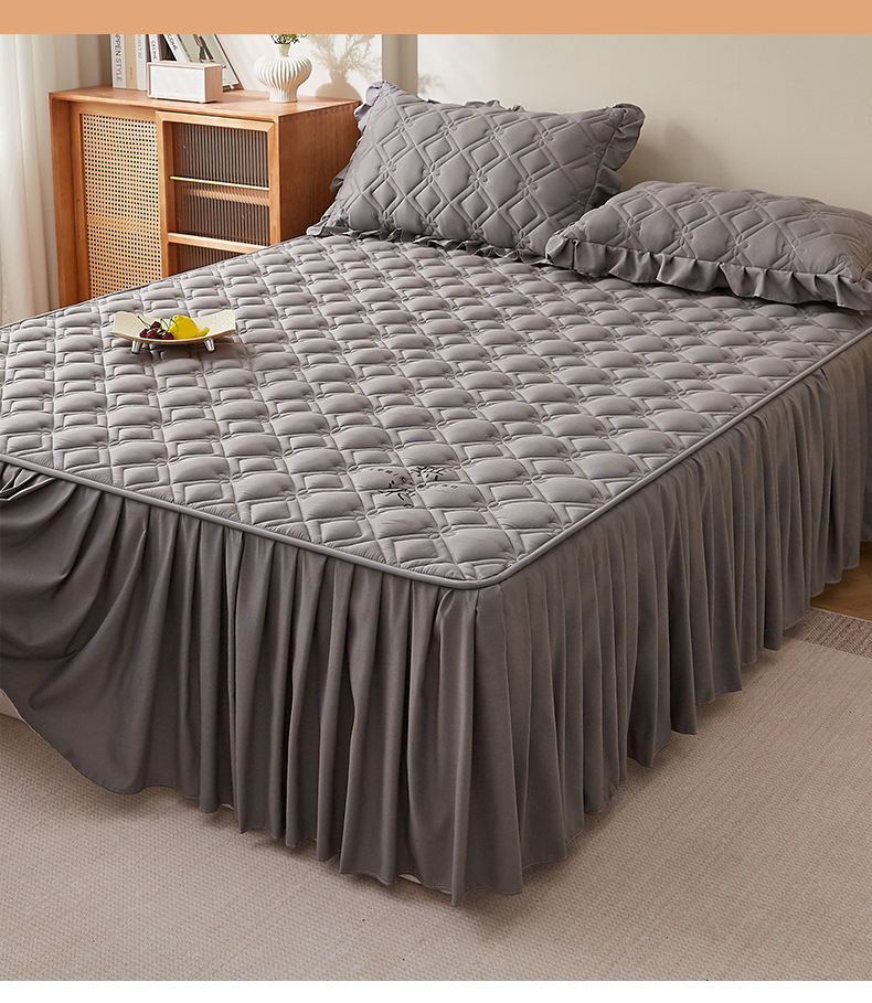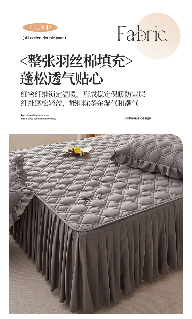 • 91家纺网 家纺一手货源 找家纺 东宇 2025年新款A类亲肤水洗棉-羽丝棉床裙 无染床裙-中灰