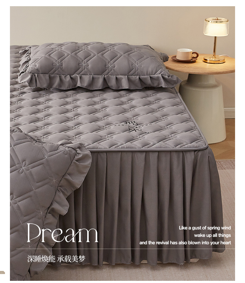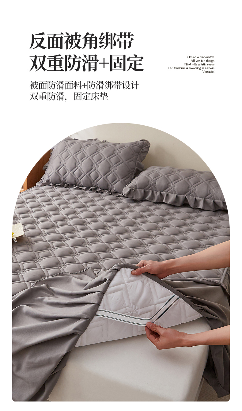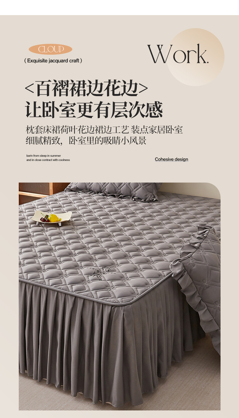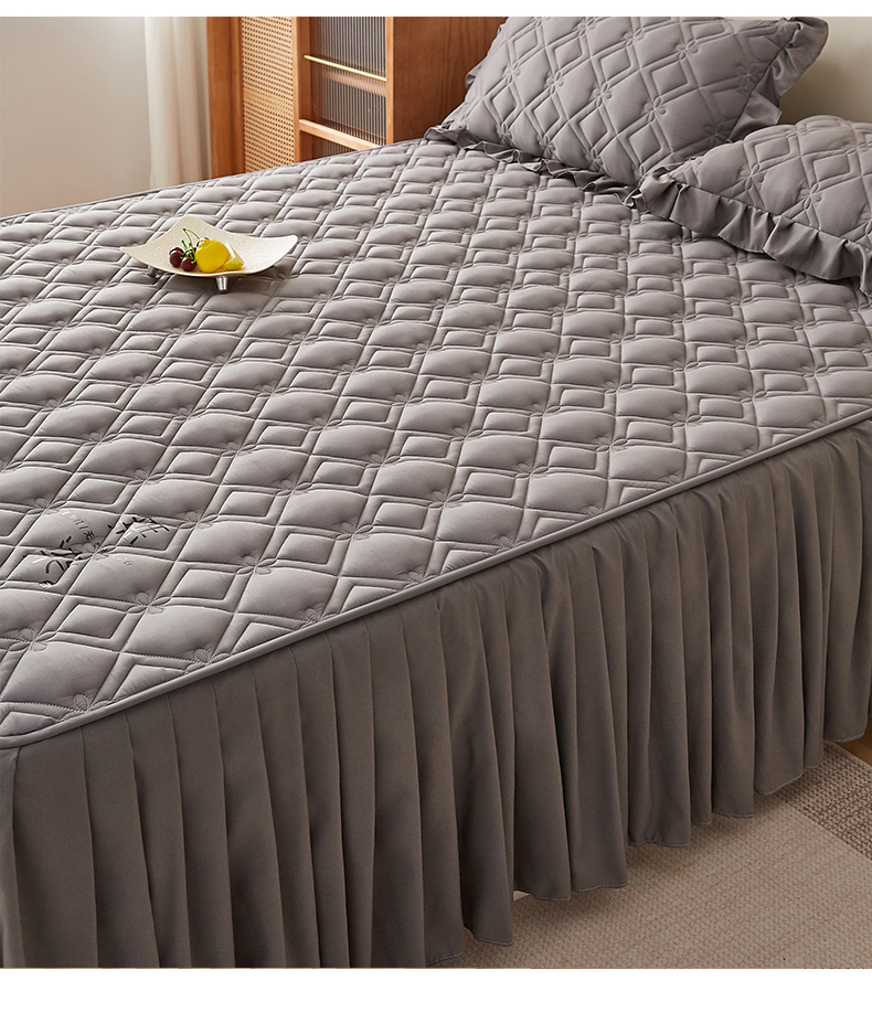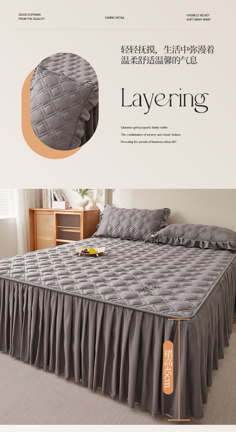 • 91家纺网 家纺一手货源 找家纺 东宇 2025年新款A类亲肤水洗棉-羽丝棉床裙 无染床裙-中灰
