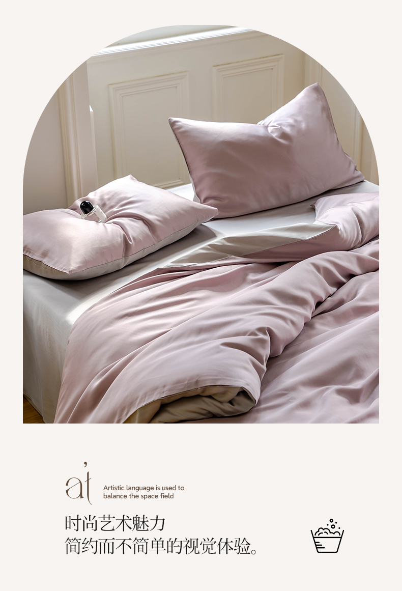 帅露 2025新款60S纯色双拼四件套 满天星紫-曙光银