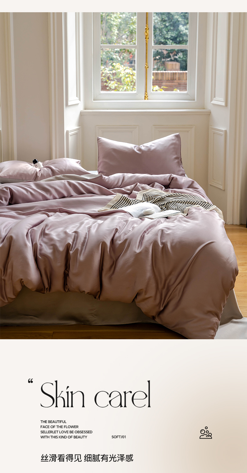 商品名称:帅露 2025新款60S纯色双拼四件套 满天星紫-曙光银