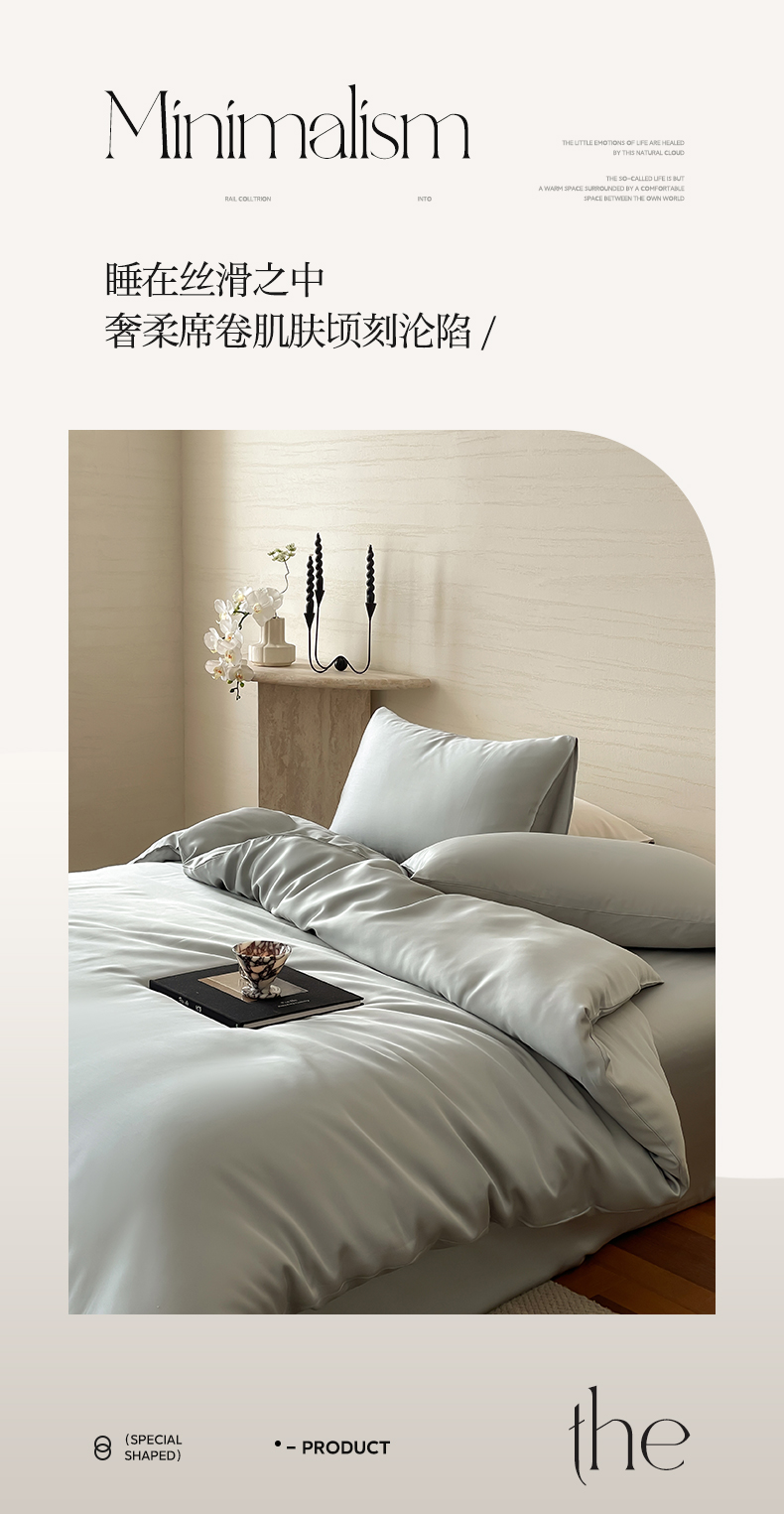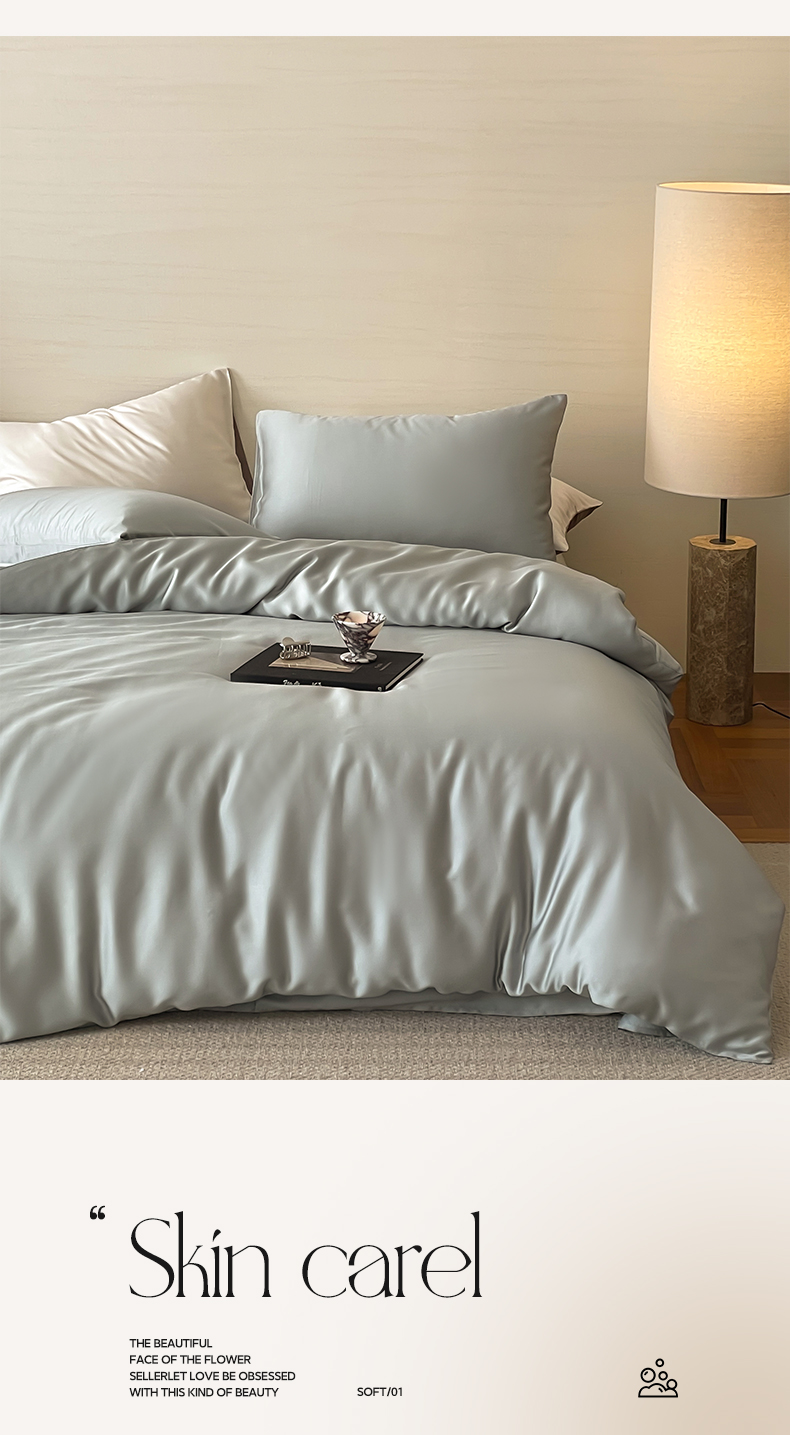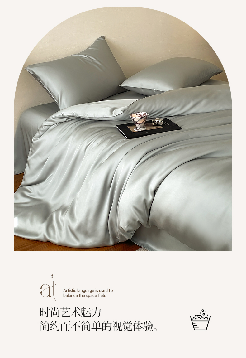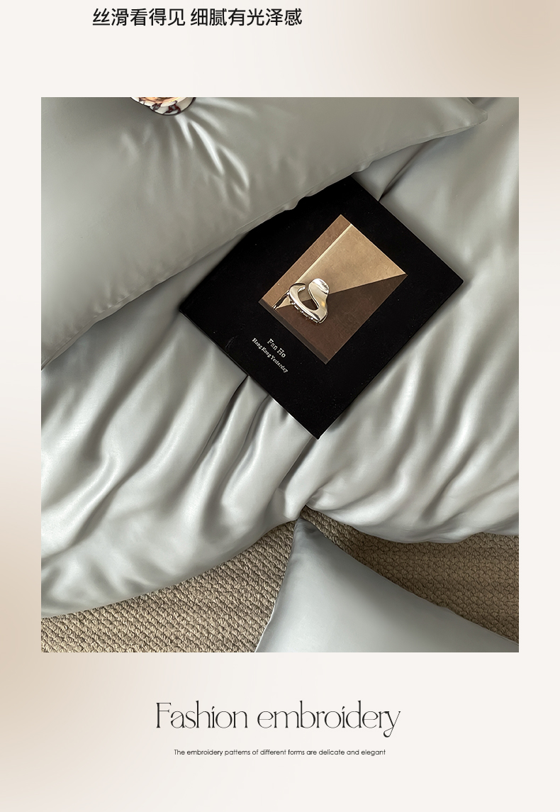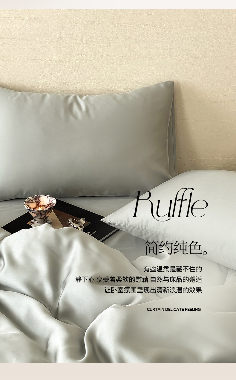 商品名称:帅露 2025新款60S纯色双拼四件套 云纱灰