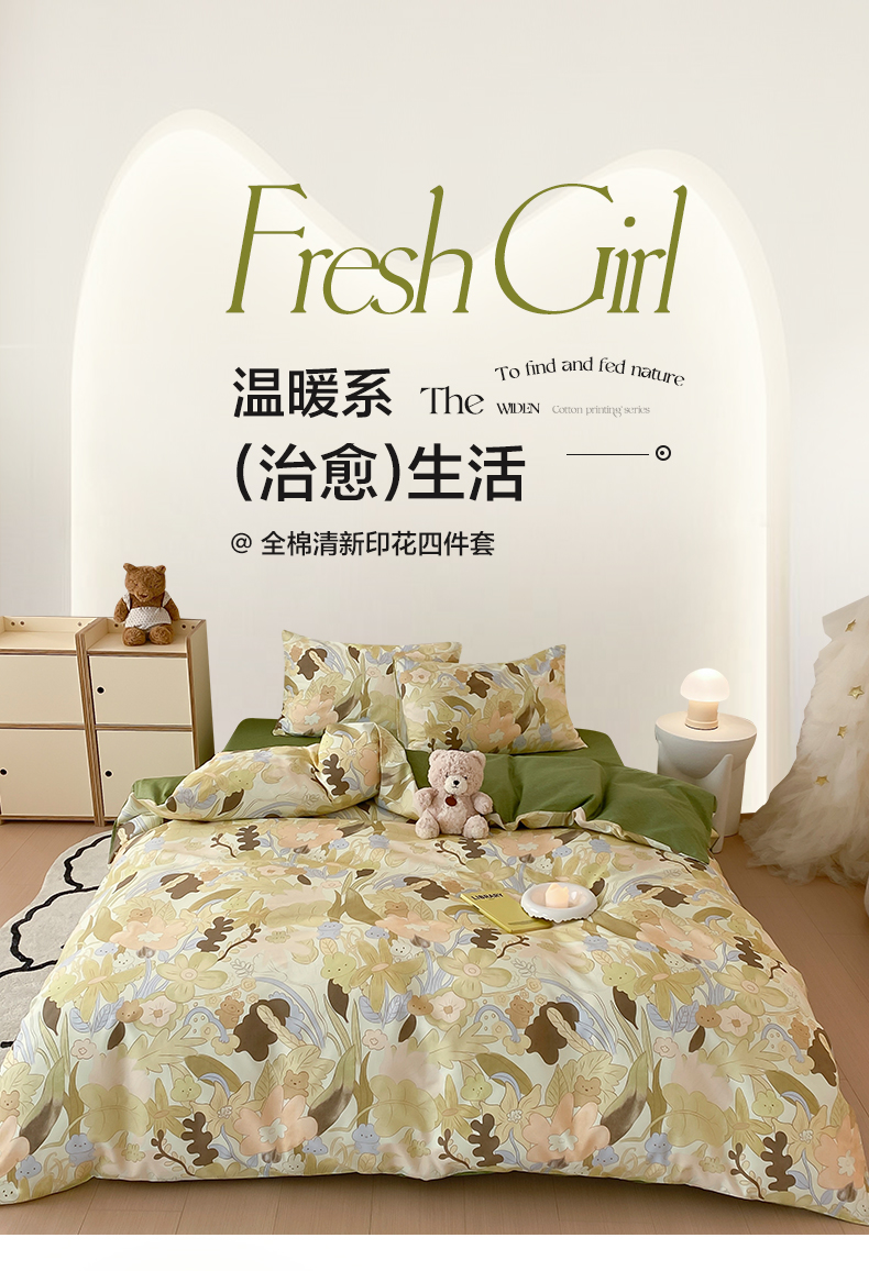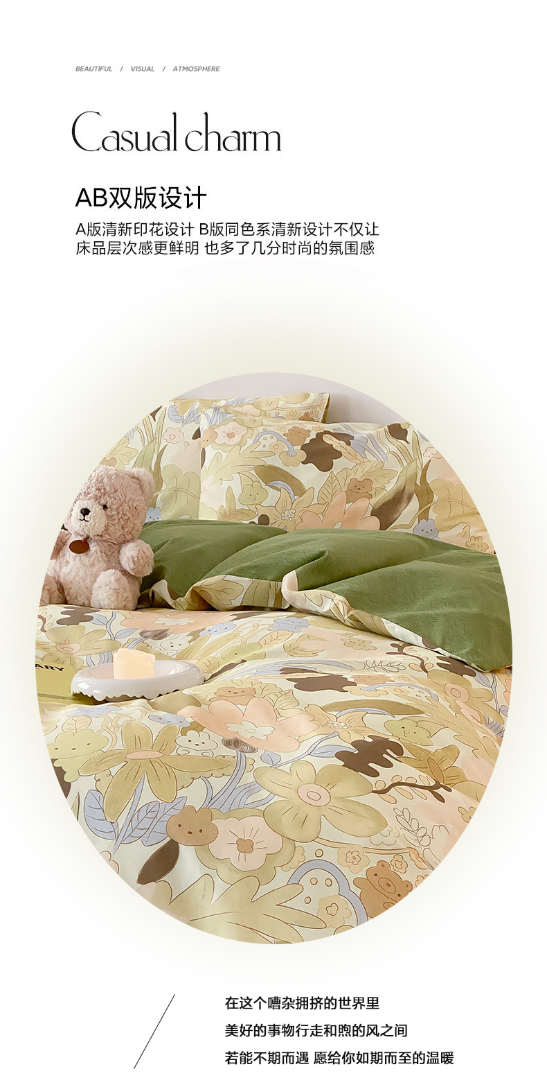 商品名称:帅露 2025开春新品全棉喷气13070小清新印花纯棉全棉四件套 日光舞曲
