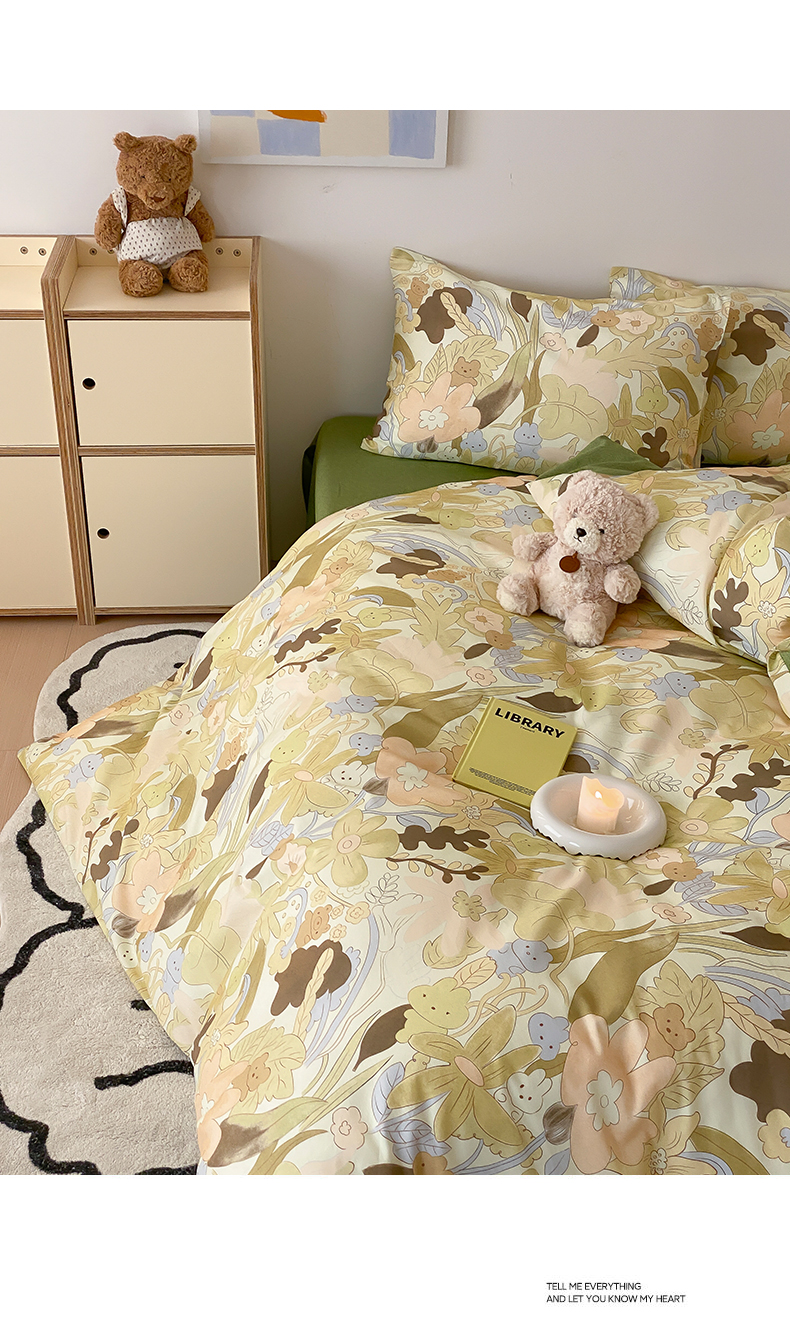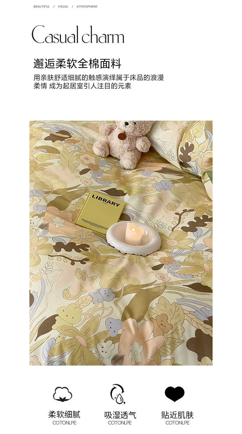 帅露 2025开春新品全棉喷气13070小清新印花纯棉全棉四件套 日光舞曲