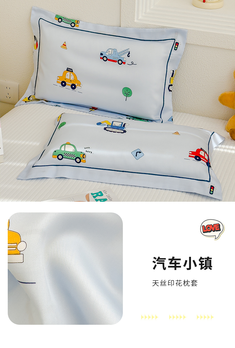 商品名称:良佐生活 2025新款50支天丝印花枕套 汽车小镇