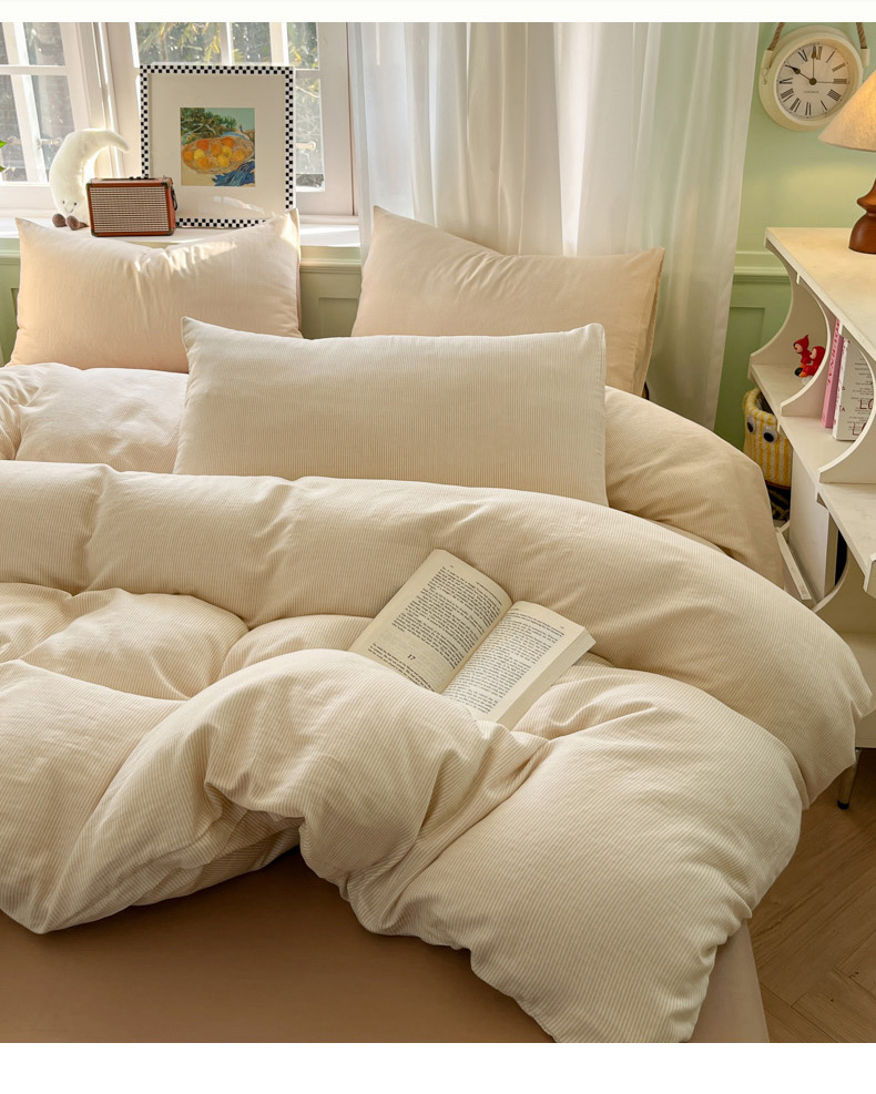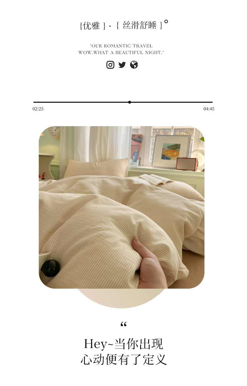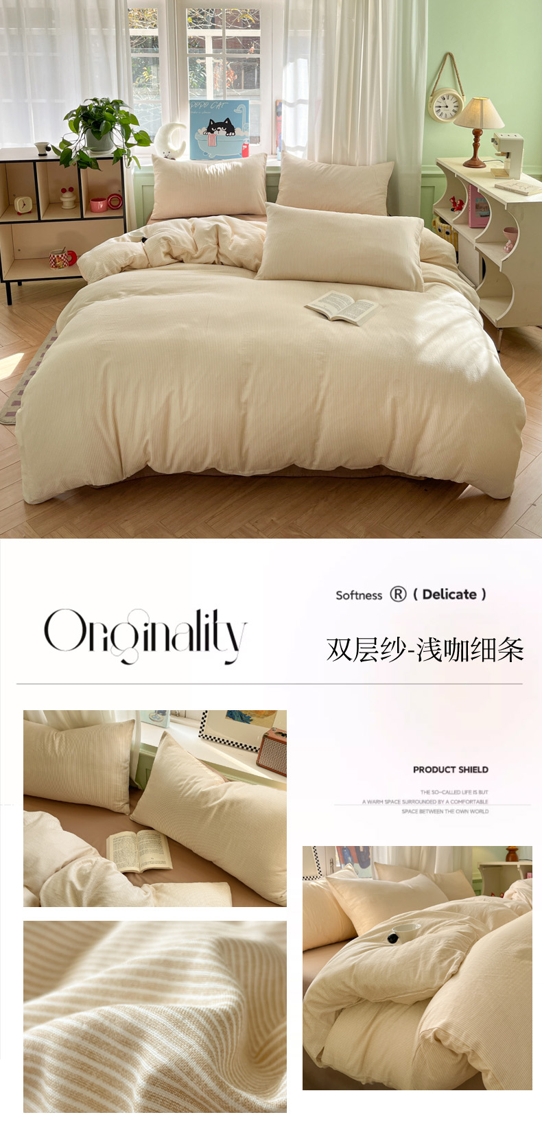 眠博士2025新款全棉双层纱 四件套 双层纱-浅咖细条