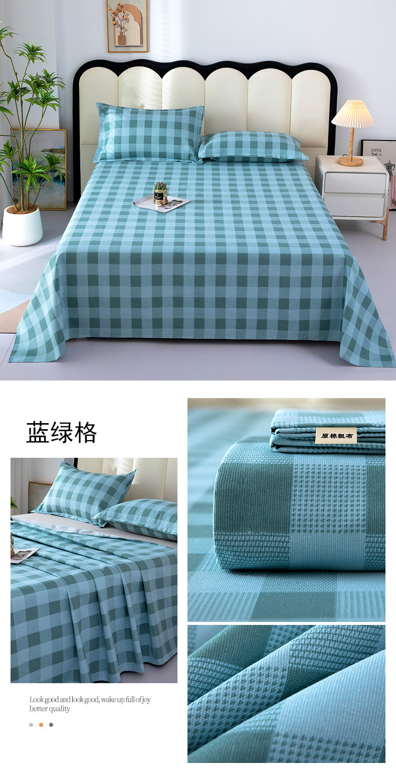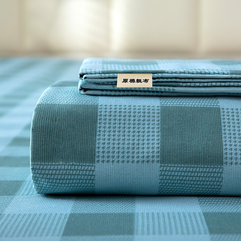 • 91家纺网 家纺一手货源 找家纺 帛洵2025新款原棉老粗布床单 蓝绿格